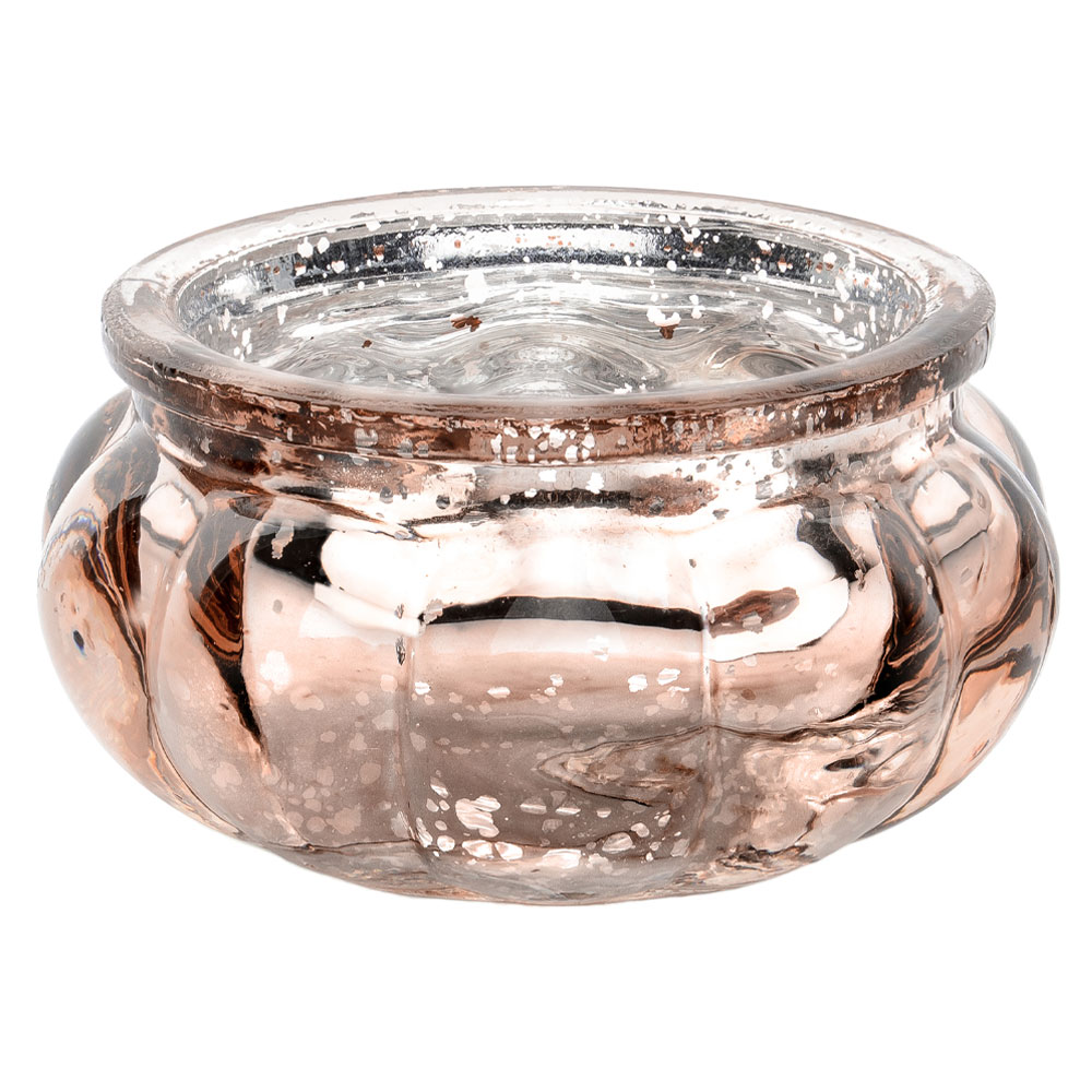 Dekorativ värmeljushållare i snyggt roséguld som garanterar en härlig stämning på din fest. Ställ fram denna ljushållare på festbordet och se hur den omedelbart livar upp hela dukningen. När festen är slut kan du även använda den i ditt hem, perfekt för mysiga filmkvällar i soffan. Helt enkelt en riktigt fin glasljushållare till både festen och hemmet.