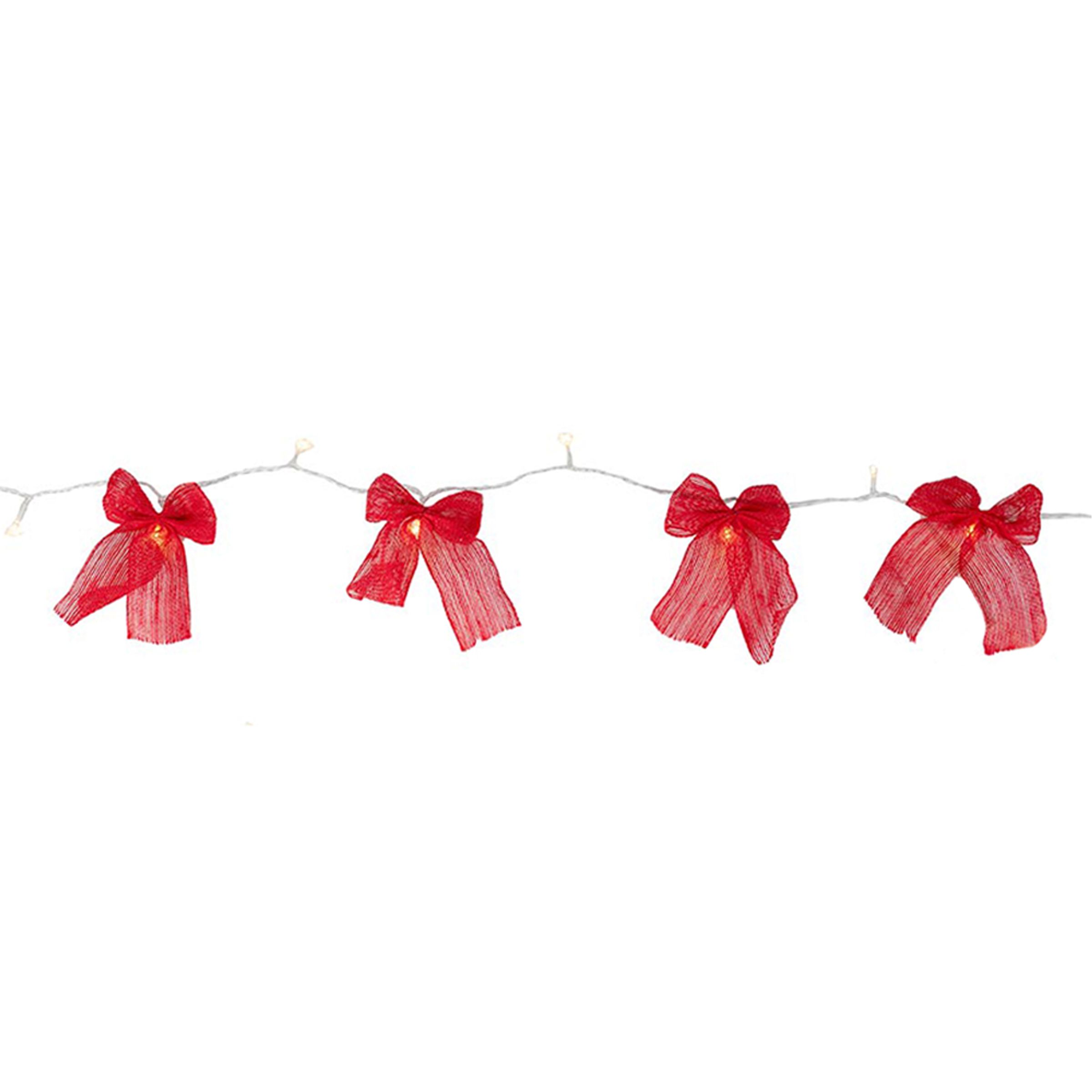 Denna charmiga ljusslinga är dekorerad med vackra, röda rosetter som ger ett harmoniskt inslag till din inredning. Perfekt för julen, kalas, eller bara när du vill göra det lite extra fint hemma.