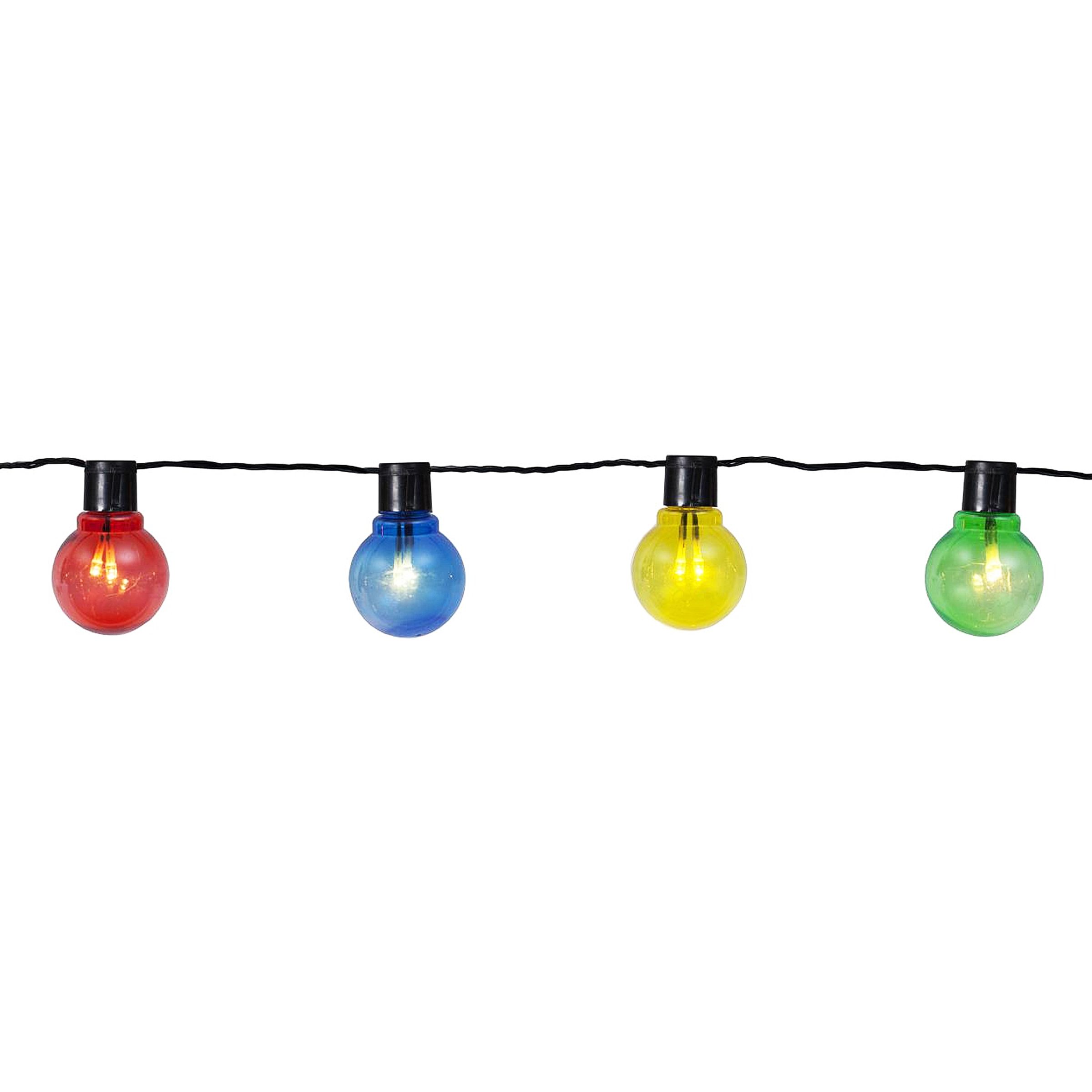 Ljusslinga Partaj Flerfärgad är en 450 cm lång ljusslinga beståendes av 16 stycken ljuskällor. Du kopplar enkelt in ljusslingan i ett vanligt EU-uttag. Vattentåligt och med flerfärgade höljen. Varje LED-lampa har en varmvitt sken.