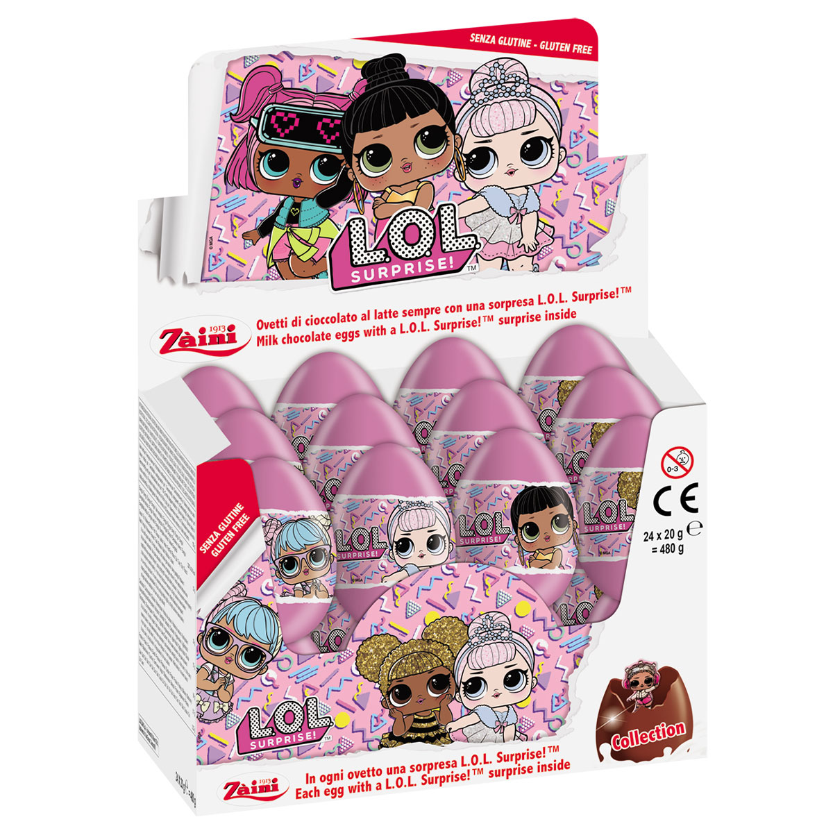 LOL Chokladägg med Överraskning 20g omfattar ett chokladägg som innehåller en leksak med motiv av LOL.