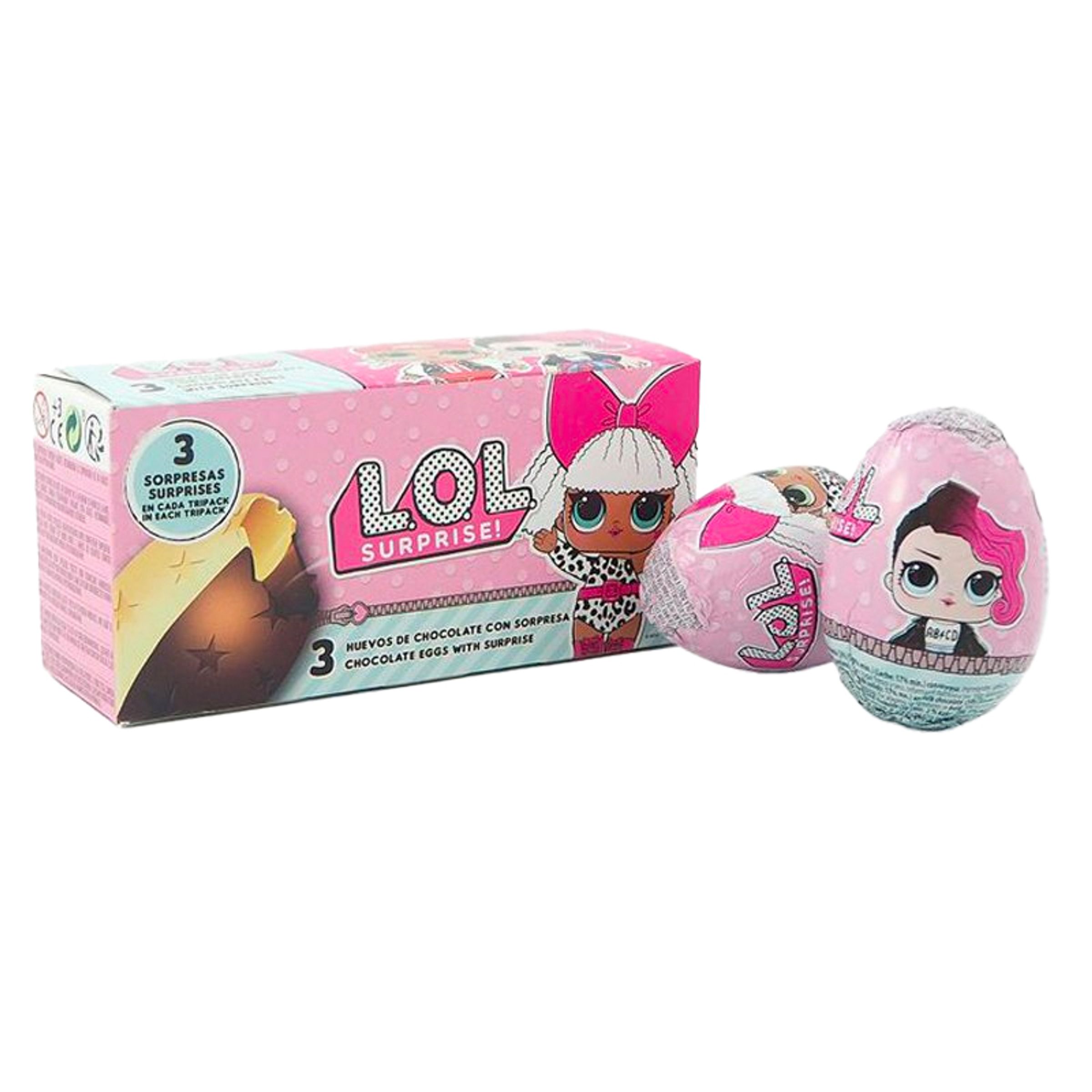 Ingenting överraskar lika mycket som L.O.L Surprise! I det här smarriga paketet hittar du 3 härliga chokladägg, men det är inte allt – öppna ägget så ska du se att där finns en liten hemlighet. Spännande värre!