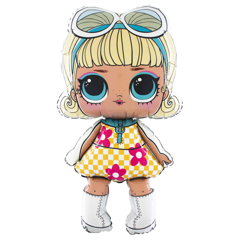 Lol Surprise Go Go Gurl Folieballong innehåller en ballong som föreställer en söt Lol Surprise docka med blont hår, blommig klänning och vita boots. Ballongen är självförslutande och fylls med luft eller helium.