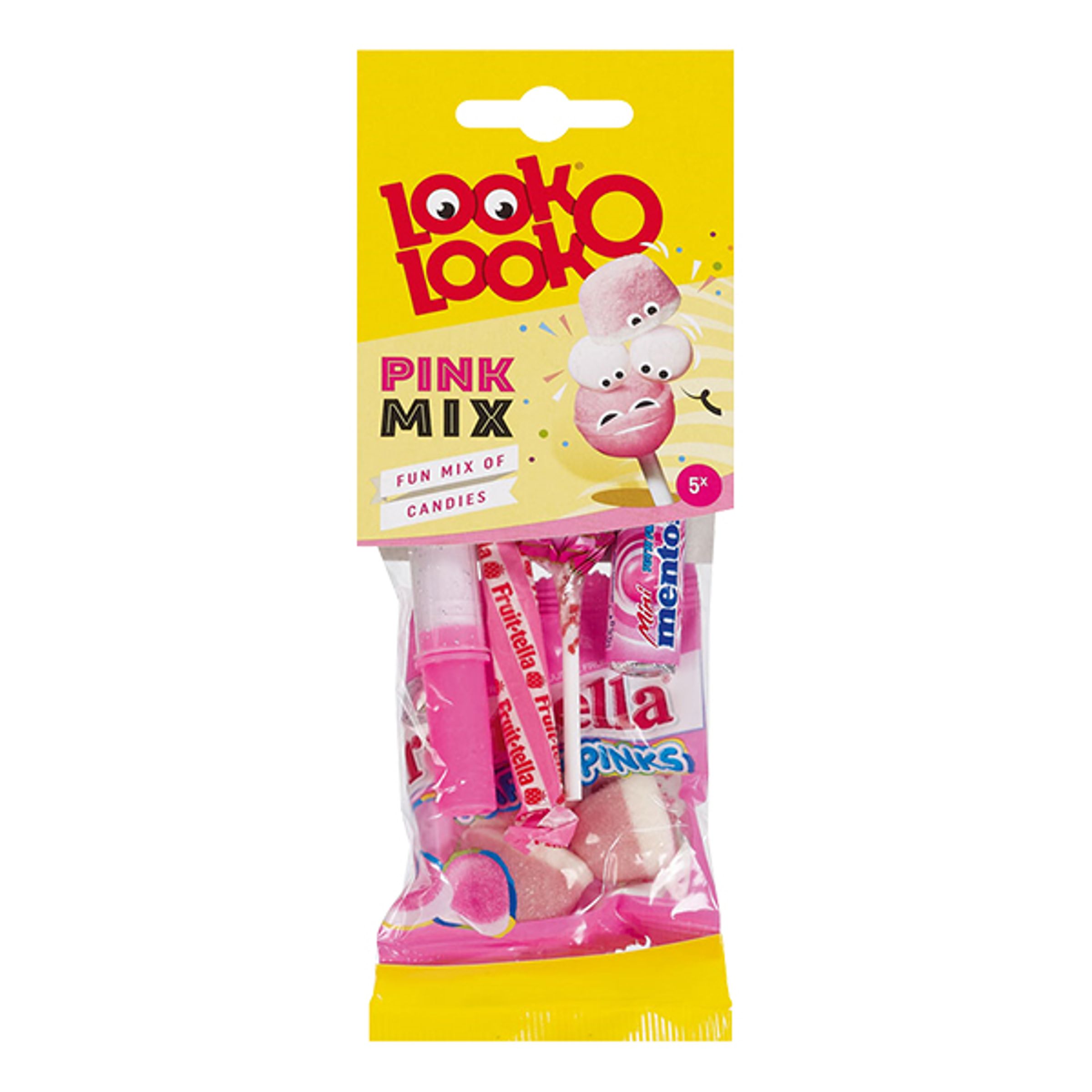 Look-O-Look Rosa Mix innehåller blandat godis och säljs på påse om 45 gram.