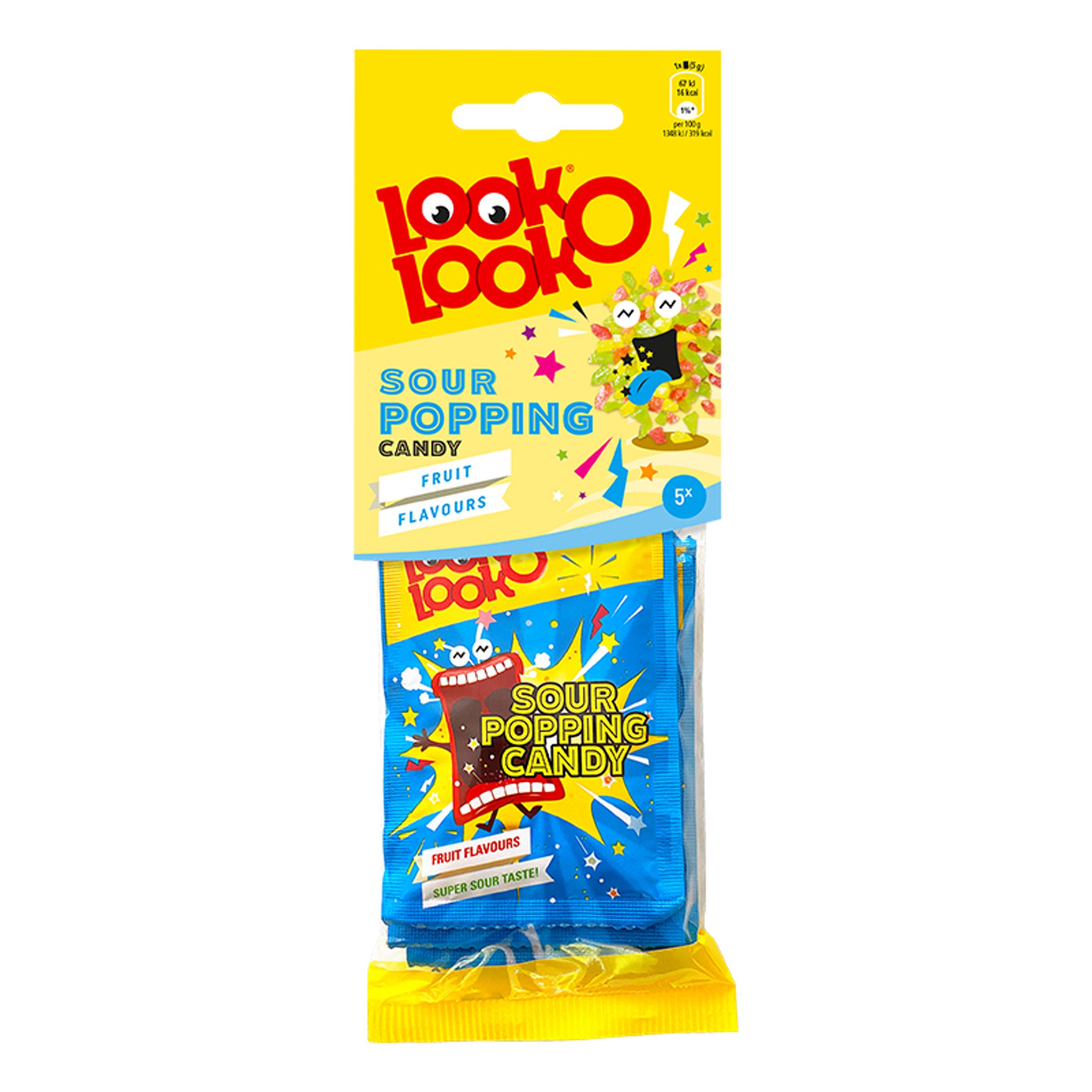 Look-O-Look Sour Popping Godis innehåller 5 påsar poppande godis (24 gram).