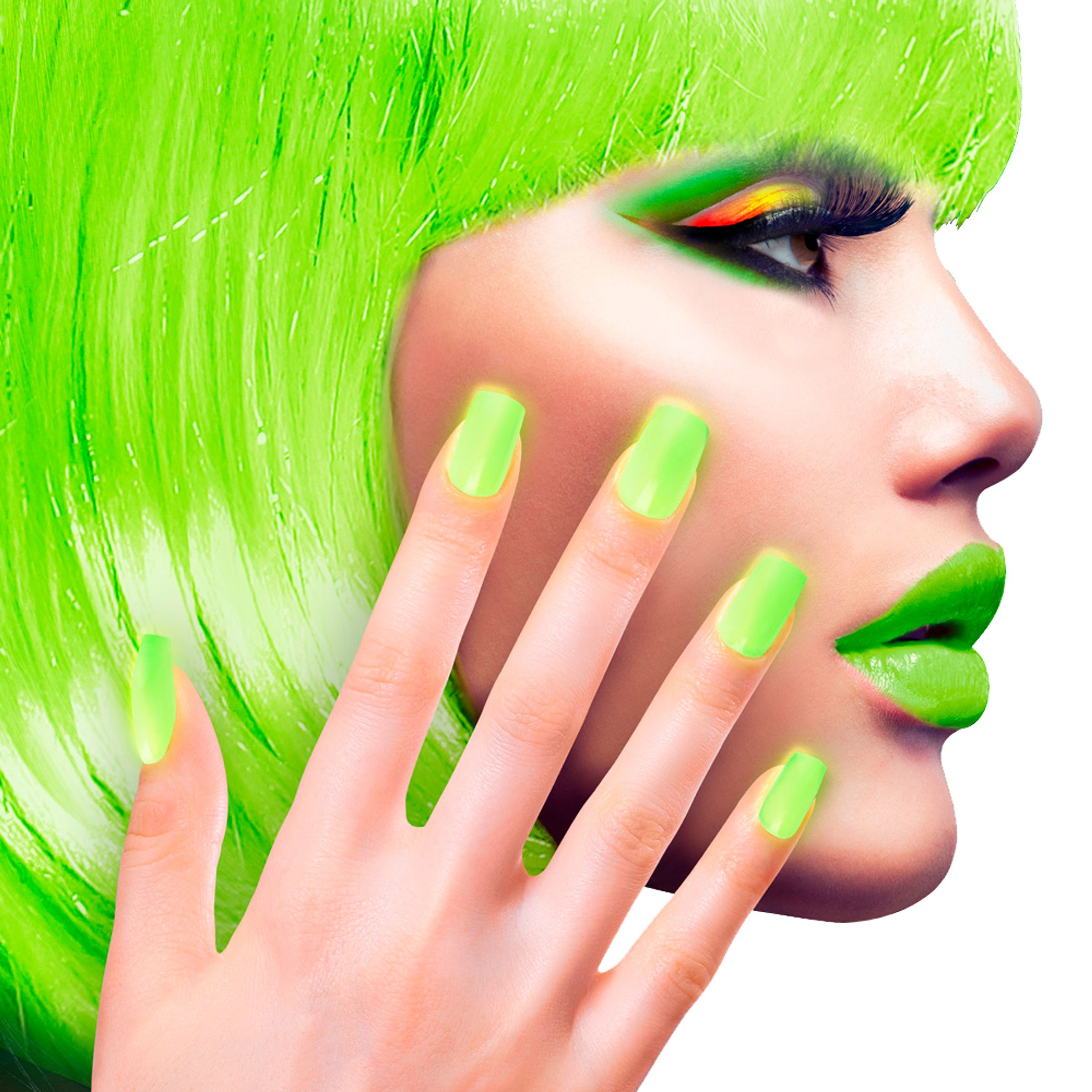 Lösnaglar Neongrön är på- och avtagbara lösnaglar som både gör dina naglar längre och ger dem en häftig neongrön färg.