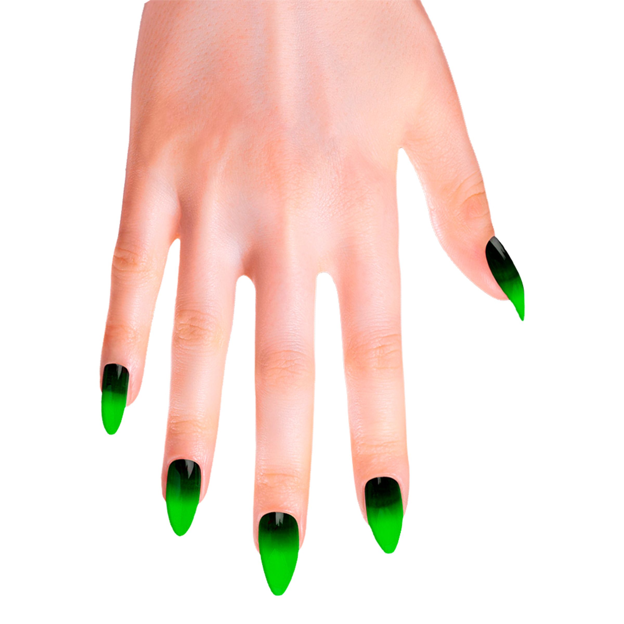 Lösnaglar Svart/Gröna inkluderar tolv stycken självhäftande stiletto-lösnaglar som du enkelt fäster på dina egna. Perfekt till häxdräkten inför Halloween!