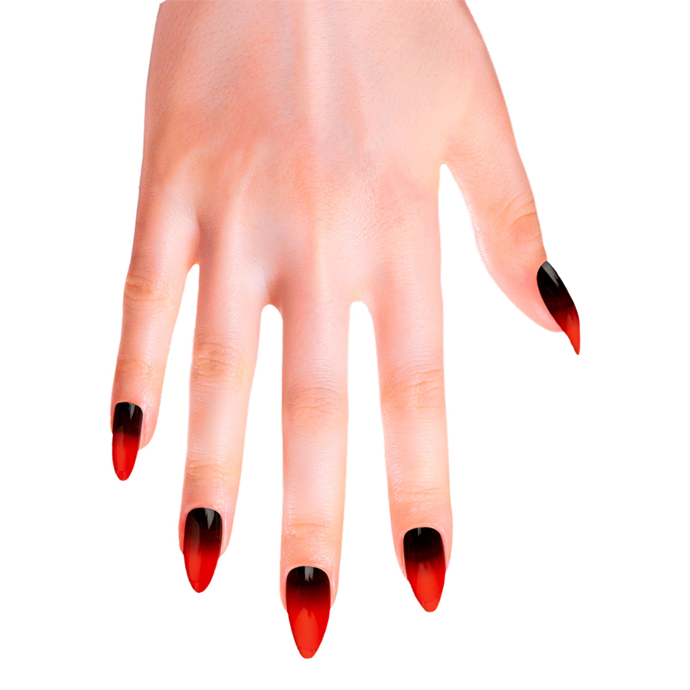 Lösnaglar Svart/Röda inkluderar tolv stycken självhäftande stiletto-lösnaglar som du enkelt fäster på dina egna. Perfekt till vampyrdräkten inför Halloween!