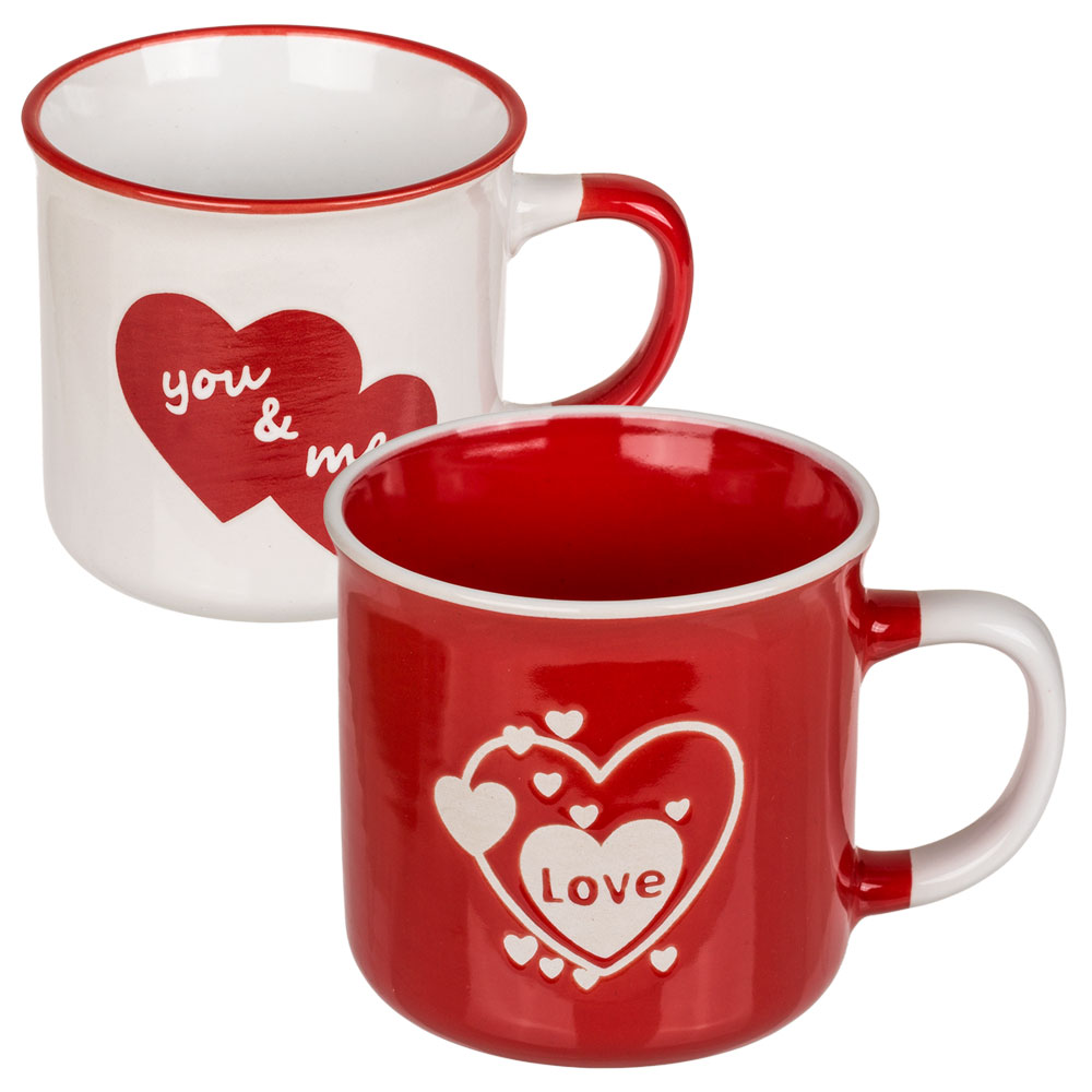 Drick varma drycker tillsammans med din partner på ett riktigt kärleksfullt sätt med dessa fina kärleksmuggar! Riktigt fina muggar i rött och vitt med texterna "Love", och "You och Me" som passar helt perfekt till varje kärlekspar. Utmärkta muggar till exempelvis alla hjärtans dag eller när ni bara vill njuta av varm dryck med riktigt romantiska muggar!