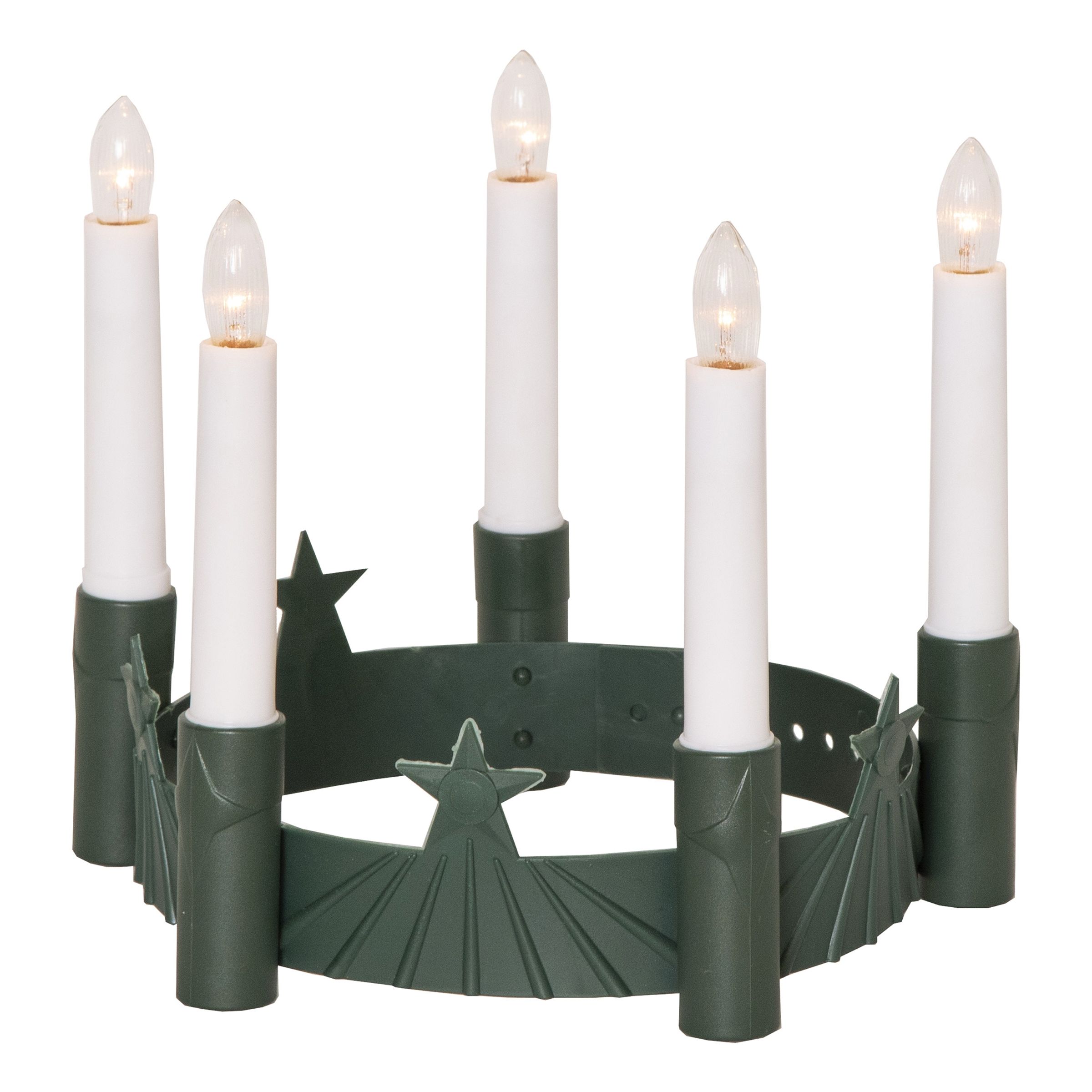 Luciakrona Grön är en klassisk luciakrona med 5 st ljus. Den kommer med en extra förlängningsdel, för att passa såväl vuxna som barn. Luciakronan är tillverkad av tålig plast och den totala höjden är 16,5 cm.