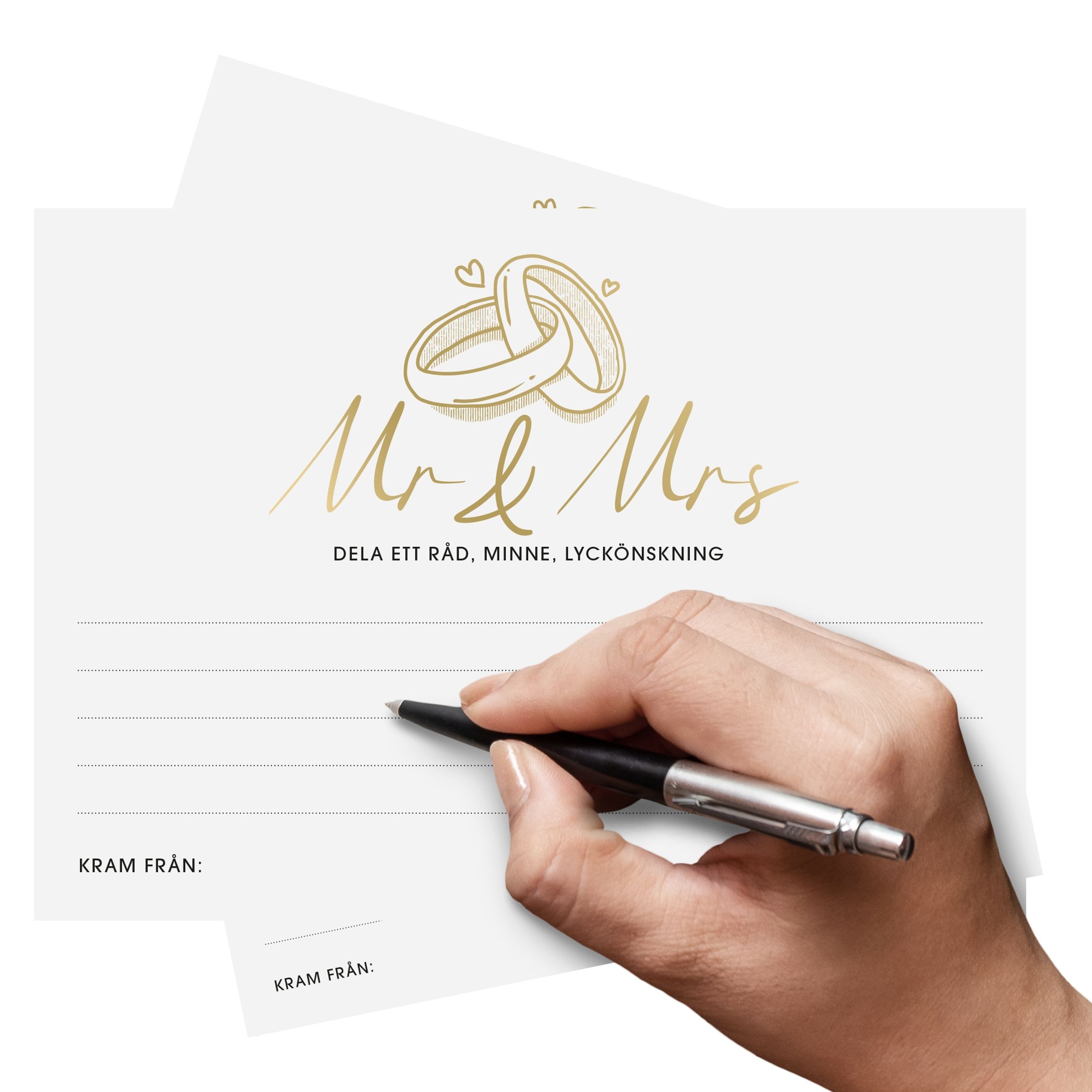 Lyckoönskningar Mr & Mrs Bröllop innehåller 8 st små kort som passar perfekt att skriva ner roliga råd eller lyckönskningar på, passar perfekt att dela ut till gästerna under bröllopsmiddagen.