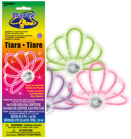 Lysande Tiara omfattar en tiara med glowsticks som lyser i upp till 7 timmar. Tiaran finns i flera olika färger, vilken färg du får slumpas.