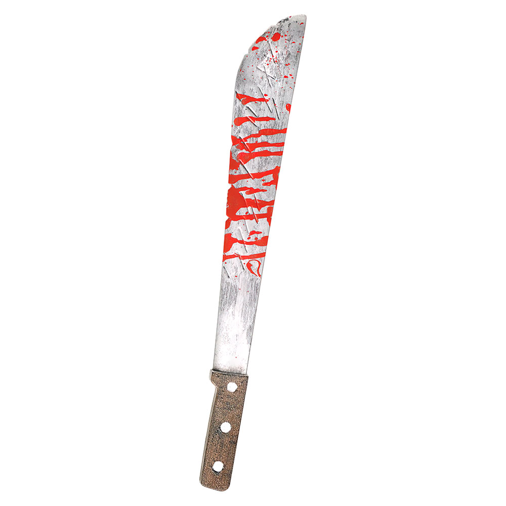 En machete används vanligtvis till att slå sig fram genom skogen och hugga ner mindre träd, men det röda blodstänket på denna machete avslöjar att den här kniven använts till något helt annat än skogsvandringar. Med denna blodiga låtsas-kniv i handen kan du snabbt skapa ett riktigt blodisande utseende. Ryslig halloween machete som blir ett perfekt tillbehör för exempelvis den som vill klä ut sig till den skräckinjagande karaktären Jason.