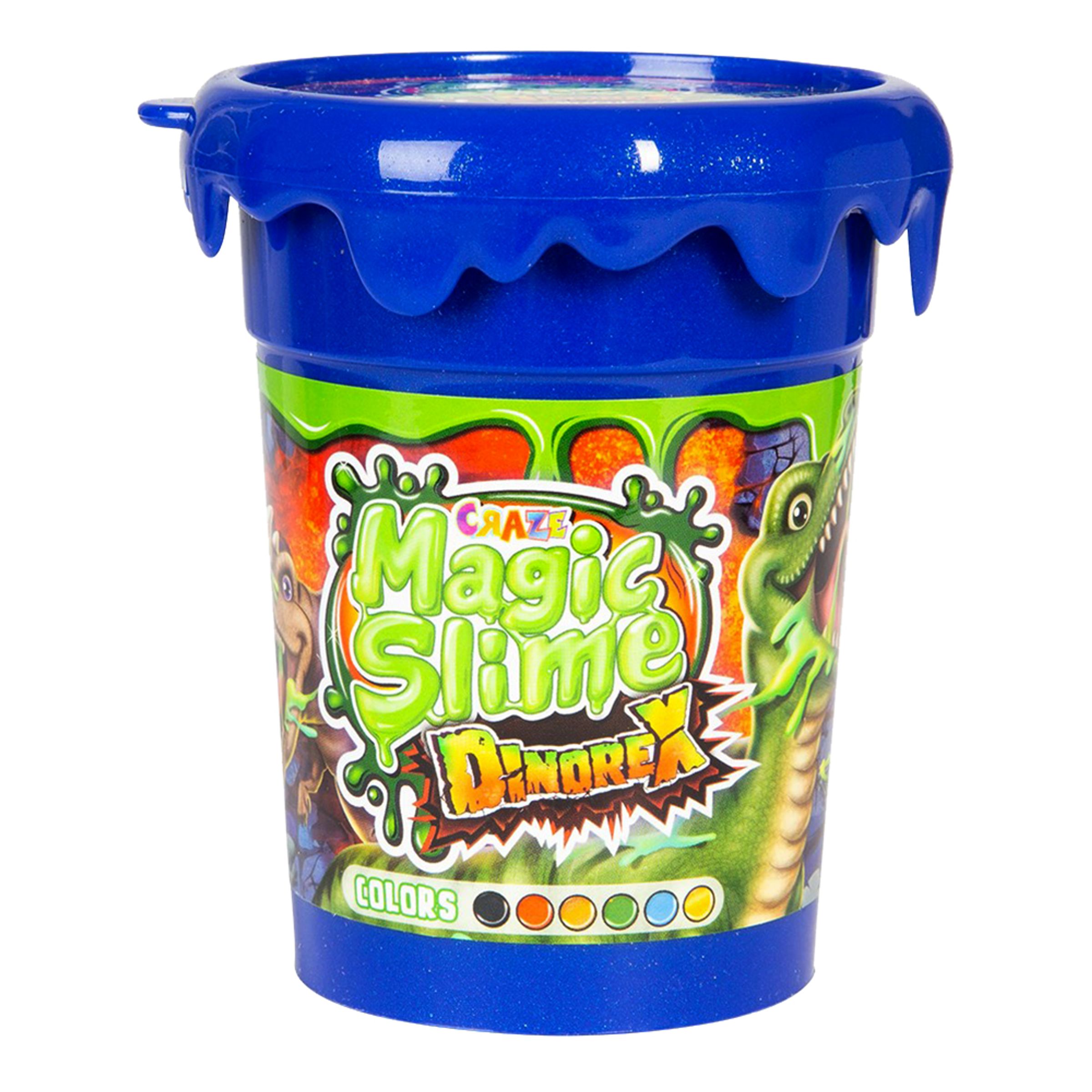 Magic Slime Surprise Dino kommer i burk om 110 ml och finns i 6 olika färger (säljs och skickas osorterat).