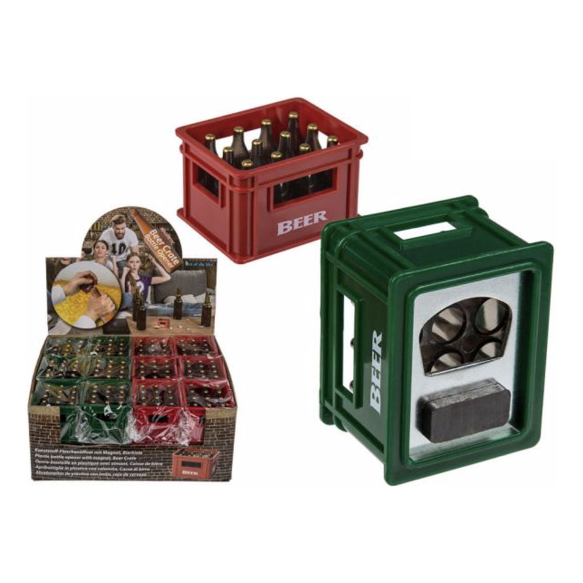 Magnet Ölback med Kapsylöppnare levereras styckvis (1-pack) och mäter cirka 6 cm stor. Färgen på ölbacken kan komma att variera (röd/grön) och på baksidan av backen finns en magnet.