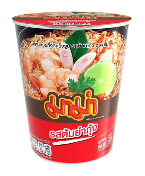 Mama kryddiga snabbnudlar med krämig Tom Yum räkbuljong.
