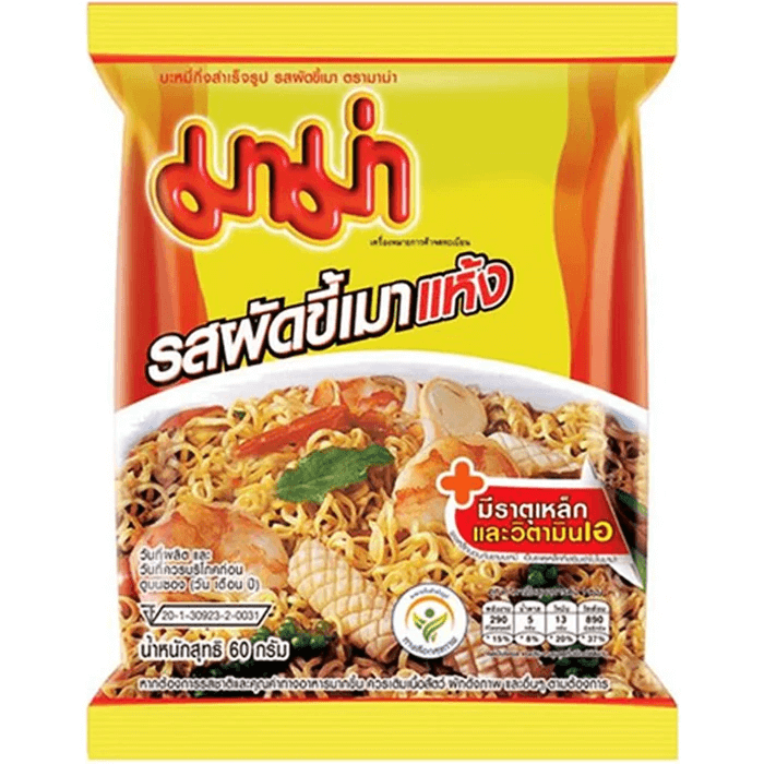 Mama snabbnudlar med pad kee mao-smak, en thailändsk maträtt med skaldjur, bönor, chili och basilika.
