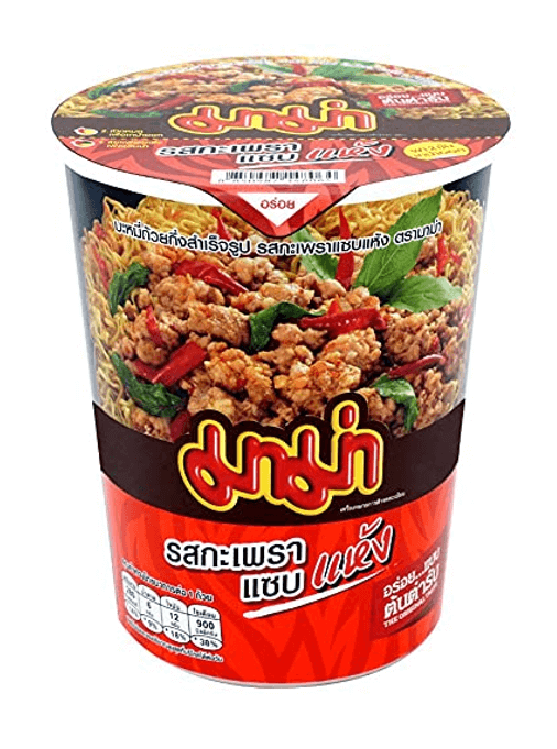 Mama snabbnudlar med smak av den thailändska rätten Pad Krapow, med wokad basilika som huvudingrediens.