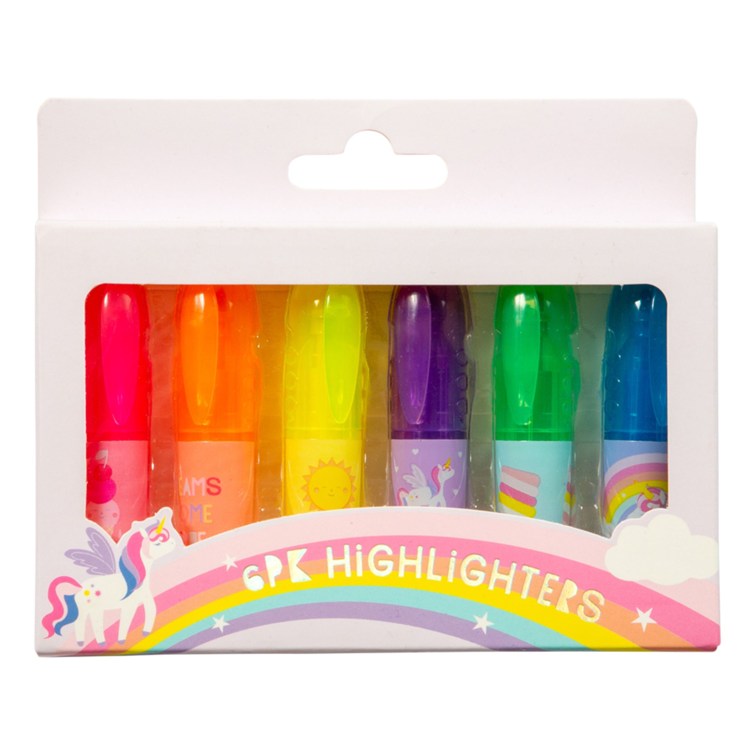 Markeringspennor inkluderar sex överstrykningspennor i färgerna rosa, orange, gul, lila, grön och blå. Perfekt till så väl plugg som pyssel!