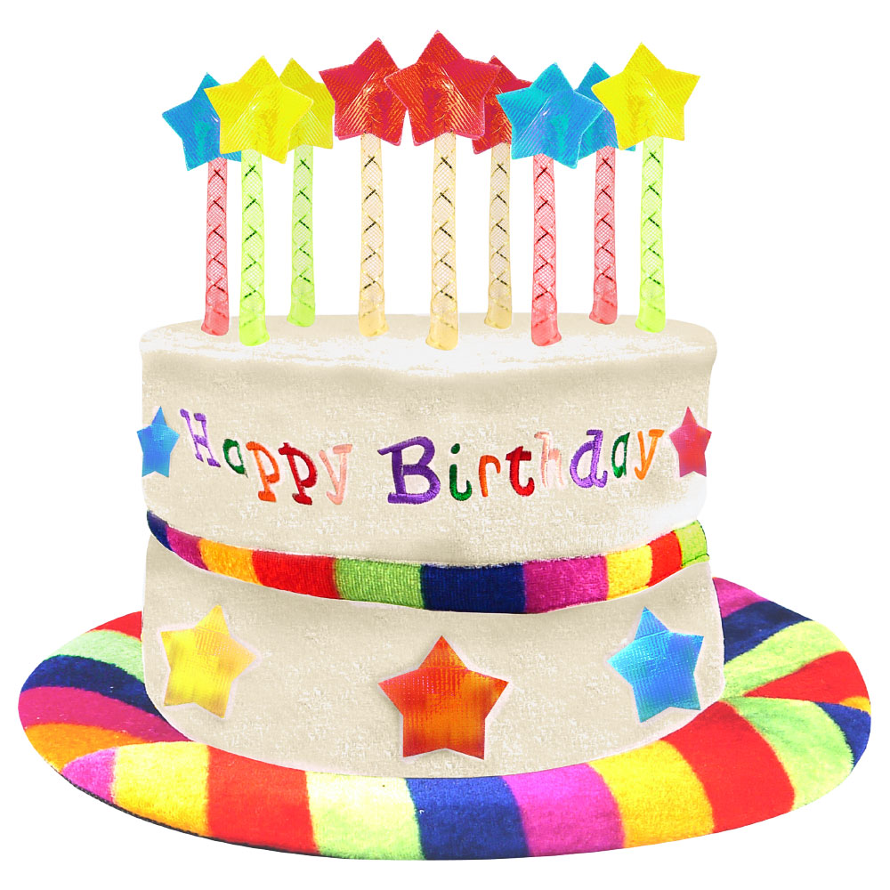 Maskeradhatt Födelsedagstårta omfattar en maskeradhatt av polyester som förställer en födelsedagstårta med texten "Happy Birthday", uppstickande tårtljus, färgglada stjärnor och regnbågsfärgade detaljer. Hatten mäter ca 58 cm i omkrets och passar vuxna.