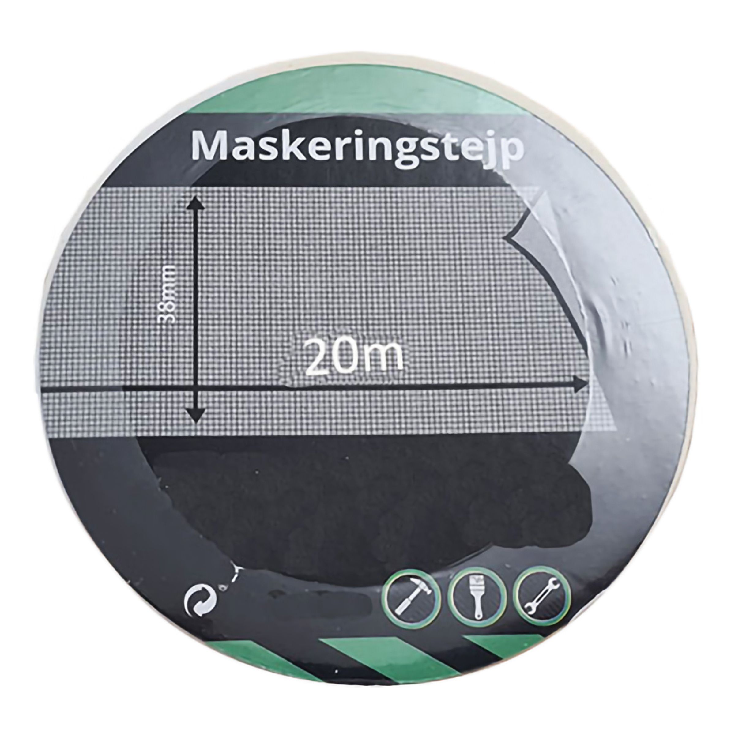 Maskeringstejp är en självhäftande tejp som främst används inom målning för att markera områden som inte ska målas. Tejpen är tunn och lätt att riva av. Tejpen mäter 38mm x 20m.