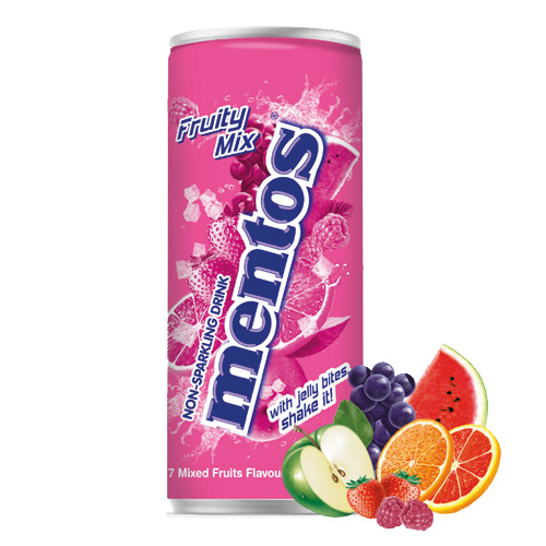 Mentos Soda Fruity Mix är en uppfriskande läsk med en fräsch blandning av smaker som äpple, vattenmelon, hallon och blåbär, och innehåller även små bitar kokosnötsgelé. Perfekt för den som söker en läcker och fruktig törstsläckare.