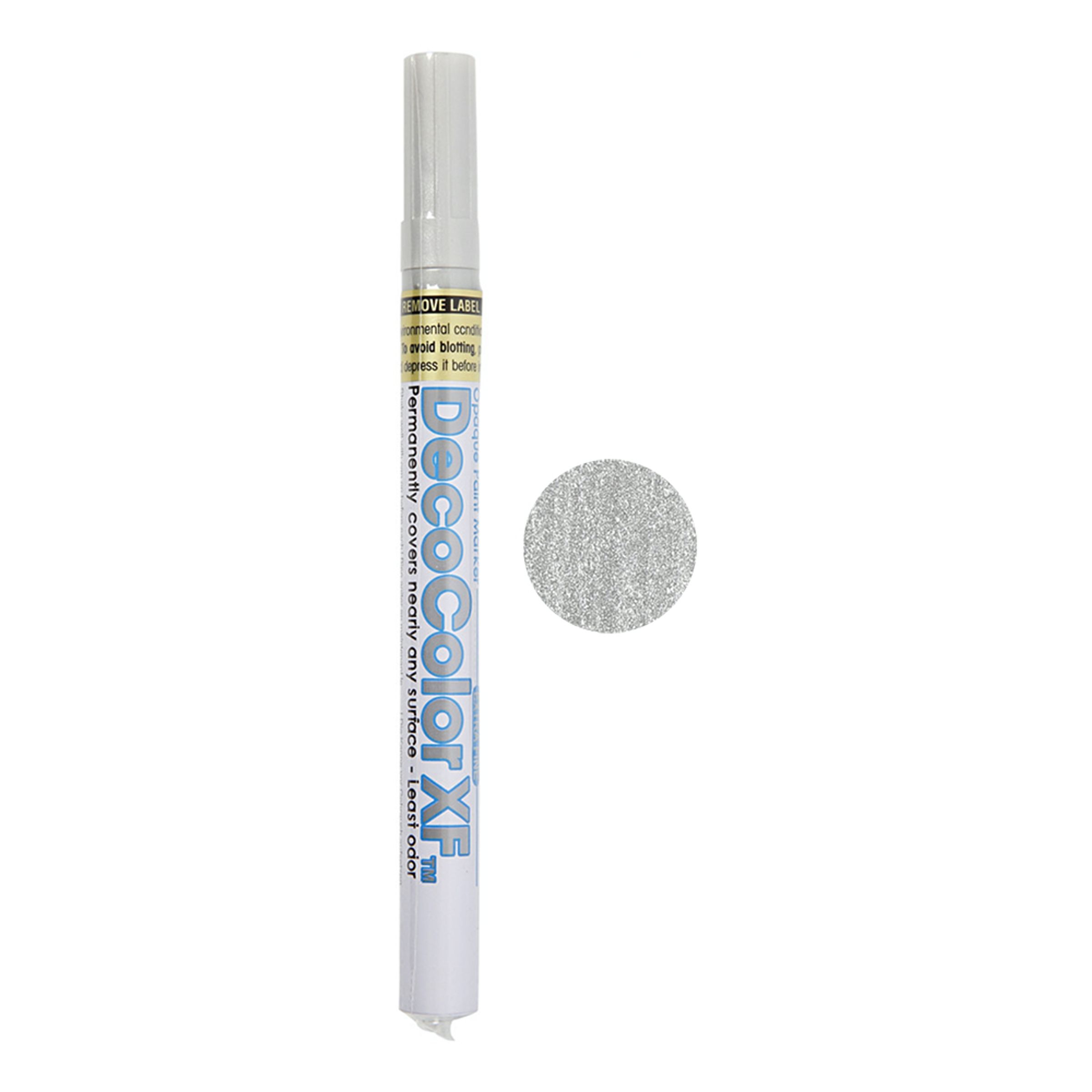 Metallpenna Silver är en permanent tuschpenna/dekorationspenna med en fin spets på 0,8 mm. Pennans färg är skimrande silver och du kan skriva med den på alla slags material, till exempel vanligt papper, trä, etc.