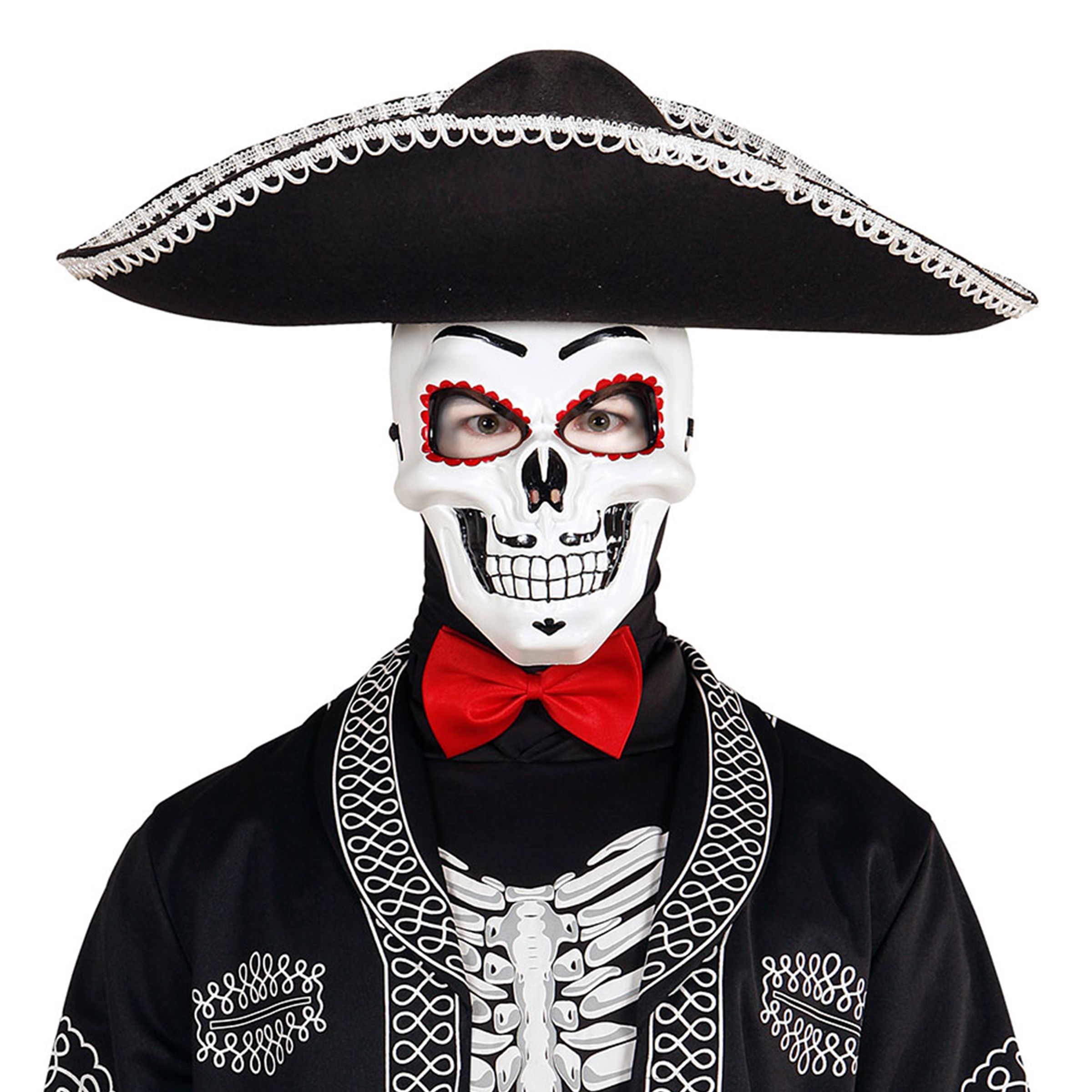 Mexikansk Day of the Dead Mask är en vit plastmask föreställande en målad dödskalle i mexikanskt Day of the Dead-tema. Masken täcker ditt ansikte och sitter på plats med elastiskt band bakom ditt huvud.