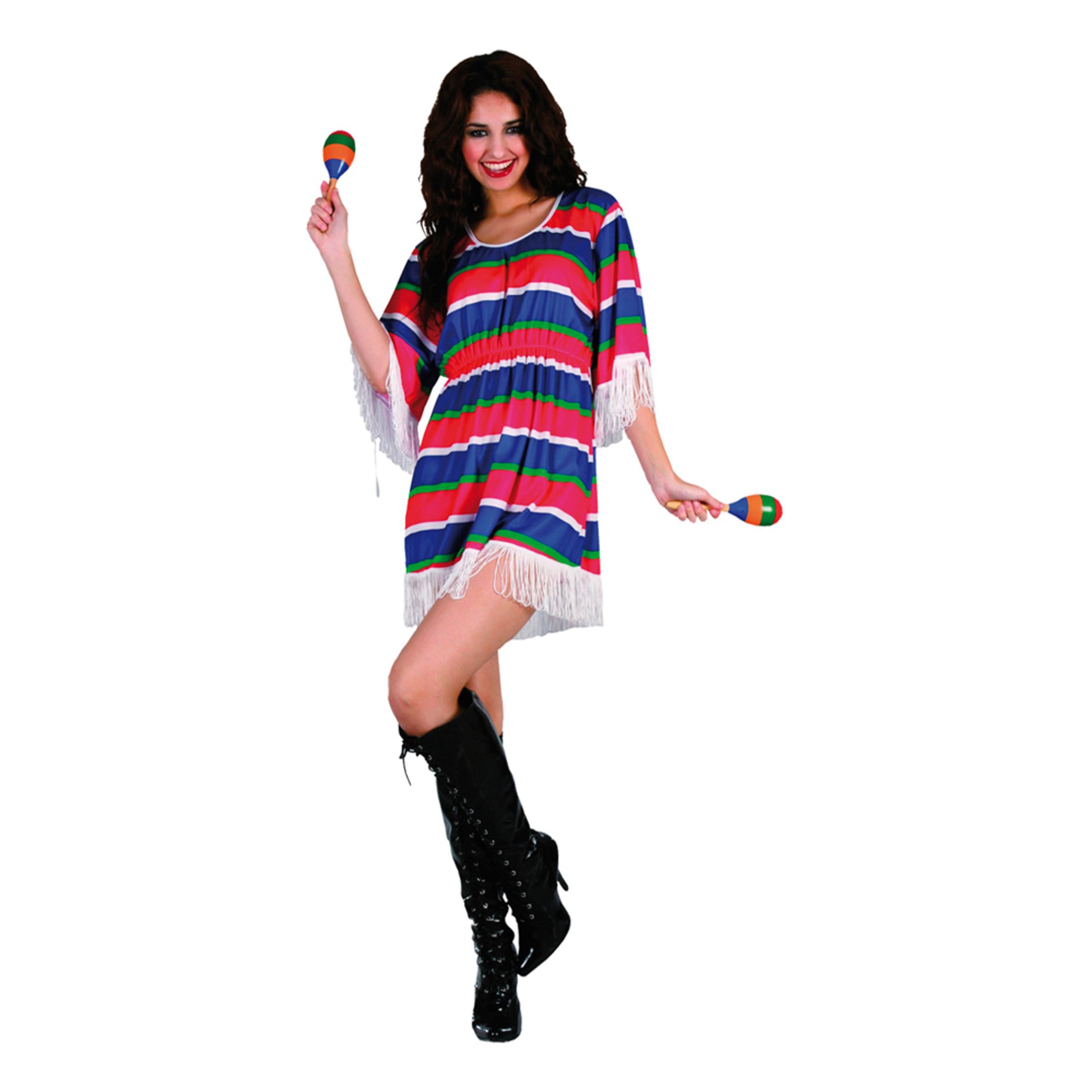 Ta fram dina maracas och ge dig ut på ett mexikanskt äventyr ikväll! Mexikansk Tjej Maskeraddräkt inkluderar en randig klänning med korta ärmar och strängade kanter. Finns i storlek: One size (passar