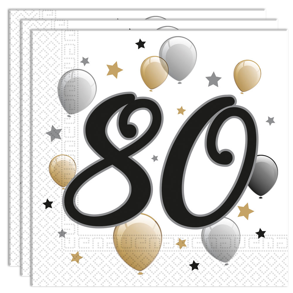Fira 80 års fest och kalas med en festlig dukning med fina servetter. Härliga pappersservetter som blir en toppenfin dekoration för en tjusig födelsedagsdukning, perfekt pynt för alla som vill fira 80 år med en riktigt fin festdukning och härlig kalasdukning att glädjas åt.