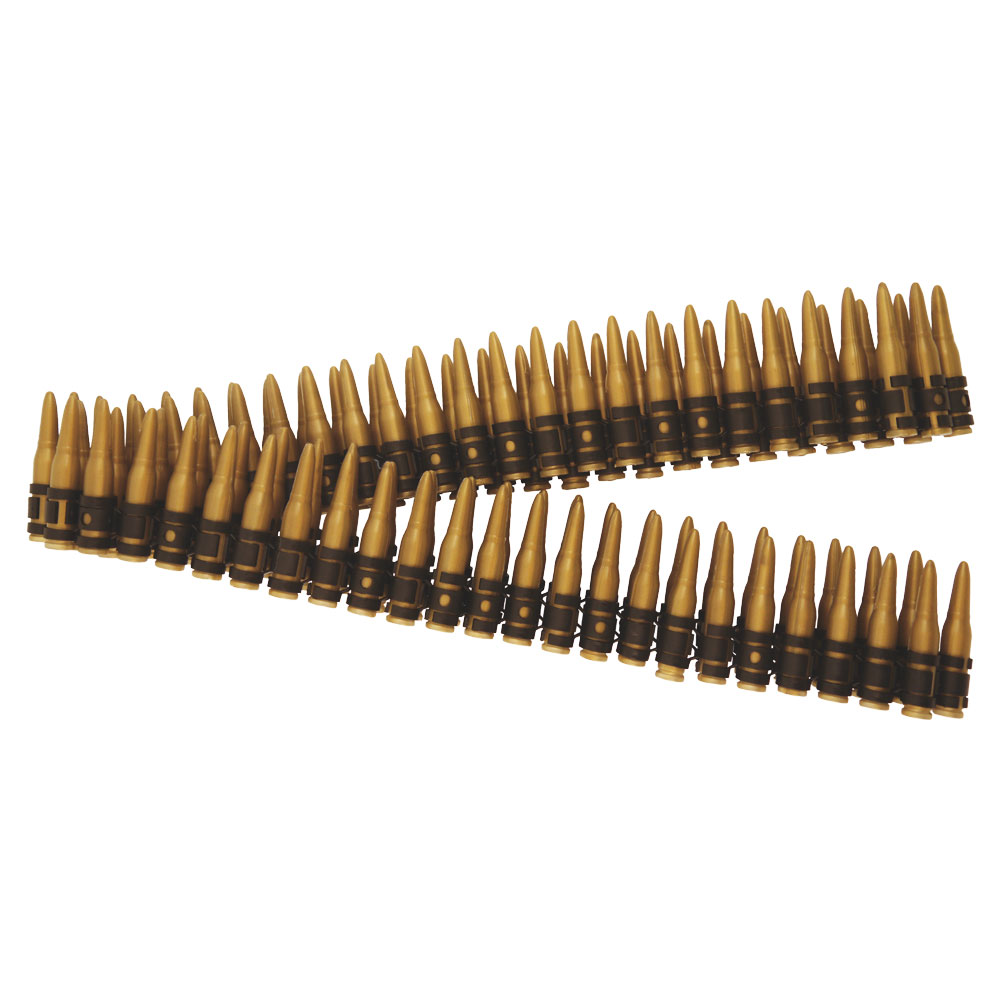 Militär Patronbälte omfattar ett patronbälte av plast med 96 st patroner. Bältet är ca 162 cm långt och passar vuxna.