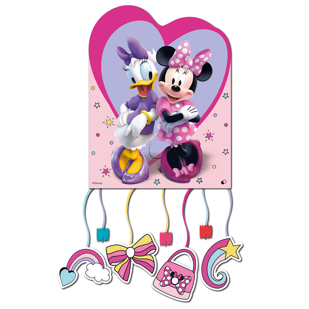 Mimmi Pigg Junior Pinata omfattar en rosa pinata med fint motiv av Mimmi Pigg och Kajsa Anka motiv. Pinatan är ca 26,5 x 21 cm stor och öppnas med en av de hängande snörena. Tillverkad i papp.