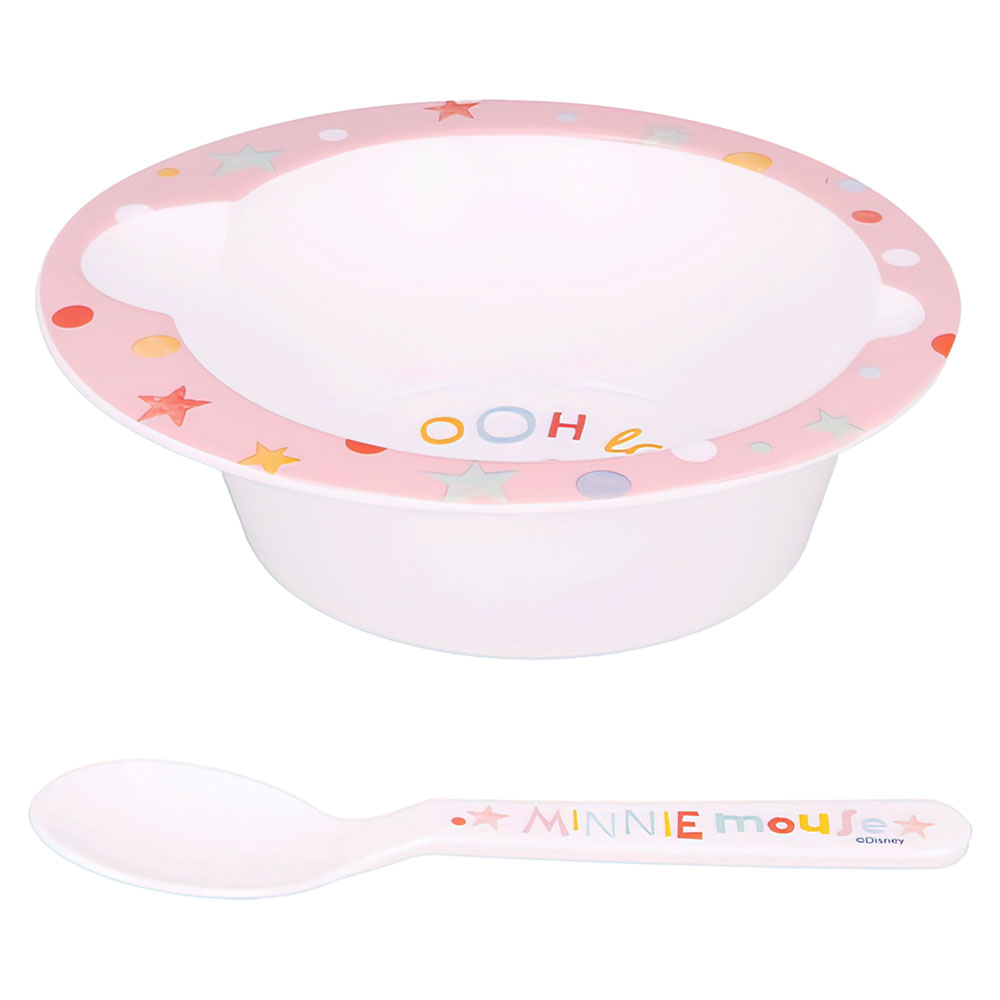 Ett superfint Mimmi Pigg-kit med skål och tillhörande sked för bebis och små barn! Detta kit i BPA-fri plast är både fint och praktiskt, där skålen har små skåror där skeden läggs på plats. Ett perfekt matningsset i rosa och vitt med fint Mimmi Pigg motiv, där både plast-skål och plast-sked tål att vara i mikron, både skönt och praktiskt när tiden är knapp med bebis eller baby och barn. Med djup tallrik och sked a la Minnie Mouse blir matningen lite enklare och lite roligare för dig, din baby och barn!