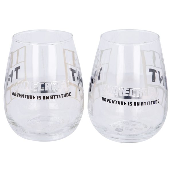 Minecraftglas består av transparenta glas med rundad form och avsmalnad topp. Glasen rymmer 510 ml och bör diskas för hand. Säljs i 2-pack.
