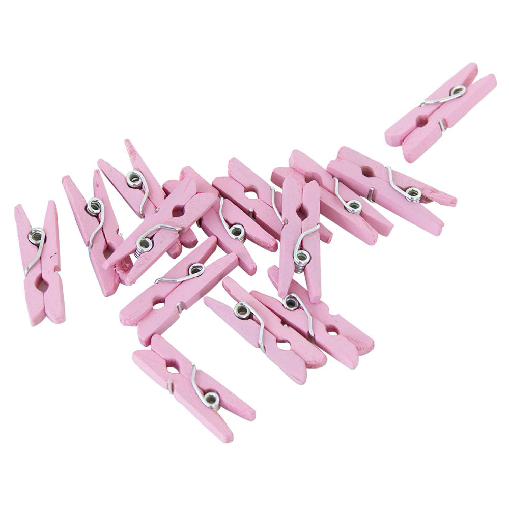 Mini Klädnypor Ljusrosa omfattar ett 24-pack ljusrosa mini klädnypor av trä som är ca 2,5 cm långa.