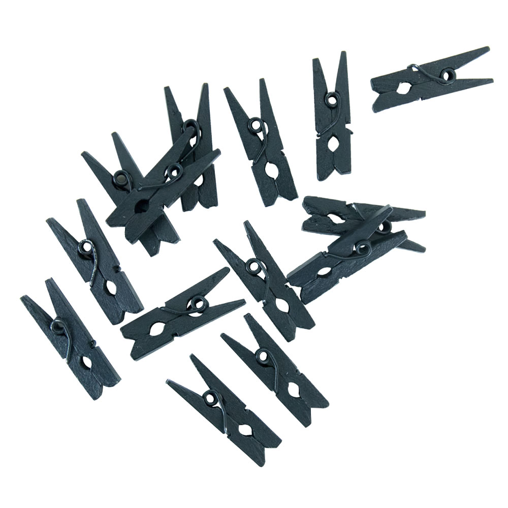 Mini Klädnypor Svart omfattar ett 24-pack svarta mini klädnypor av trä som är ca 2,5 cm långa.