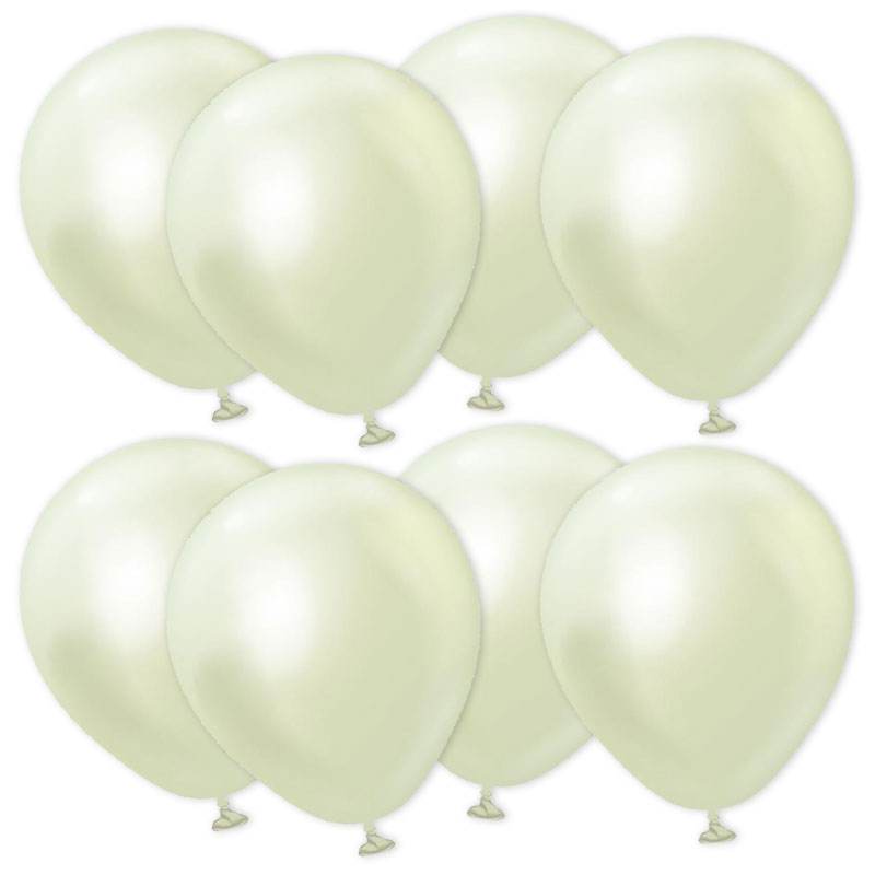 Miniballonger Chrome Green Gold omfattar små, guld-gröna latexballonger med chrome-effekt. Ballongerna fylls med luft och blir ca 13 cm stora.