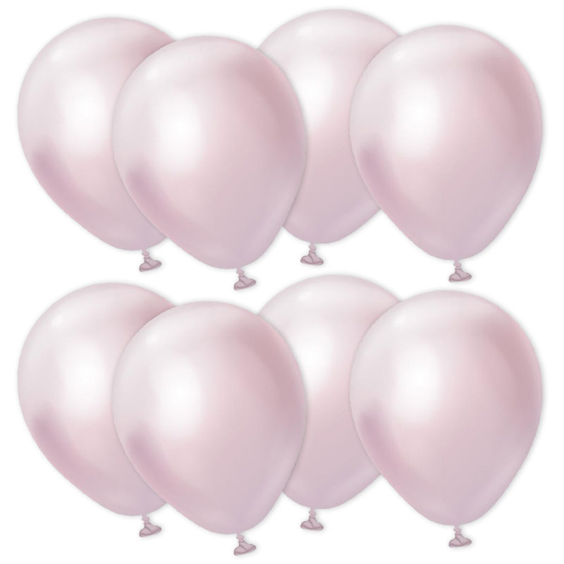 Miniballonger Chrome Pink Gold omfattar små, guld-rosa latexballonger med chrome-effekt. Ballongerna fylls med luft och blir ca 13 cm stora.