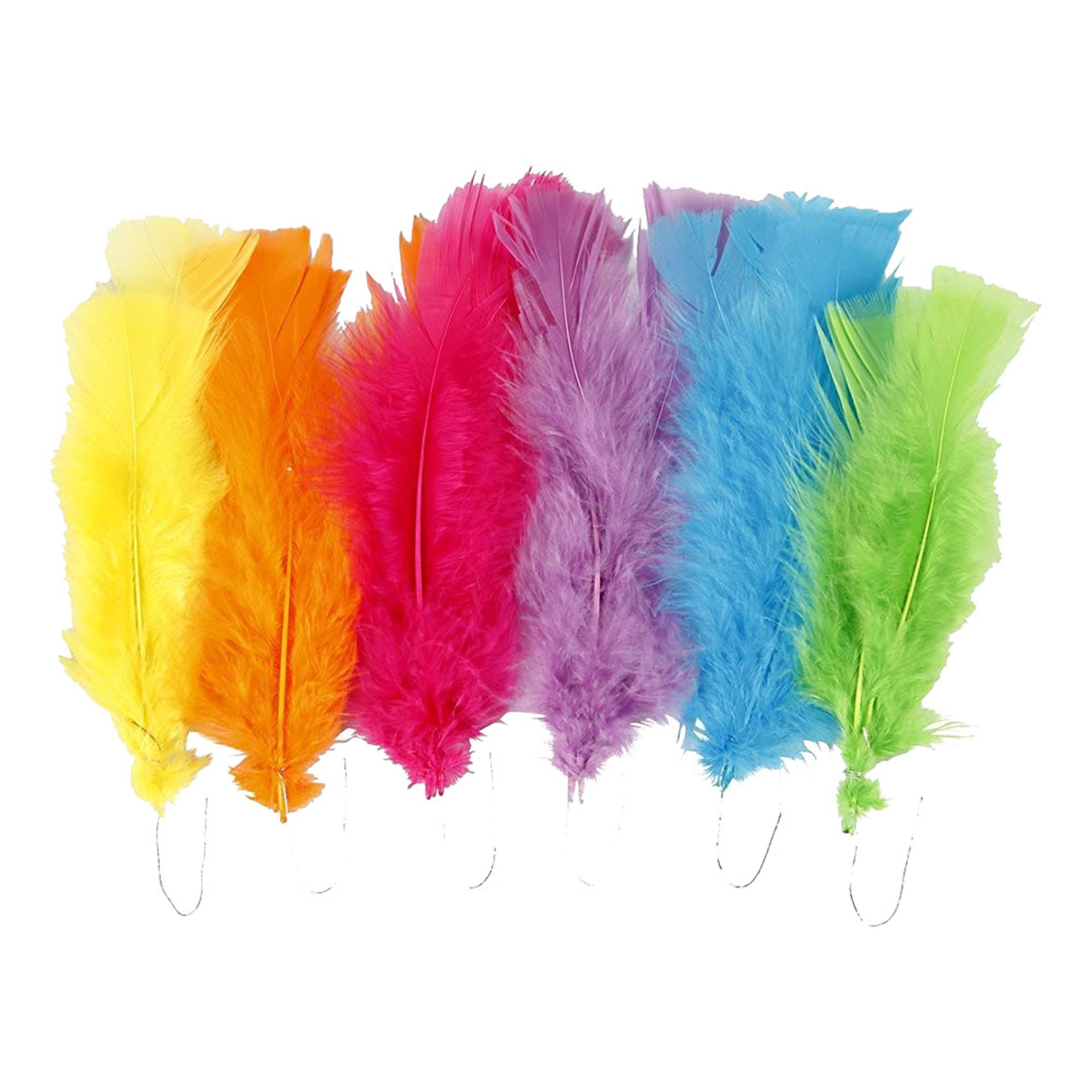 Mixade Påskfjädrar innehåller 18 påskfjädrar i färgerna grön, gul, lila, orange, rosa, turkos. Fjädrarna mäter ca 11-17 cm och fästs med ståltråd.