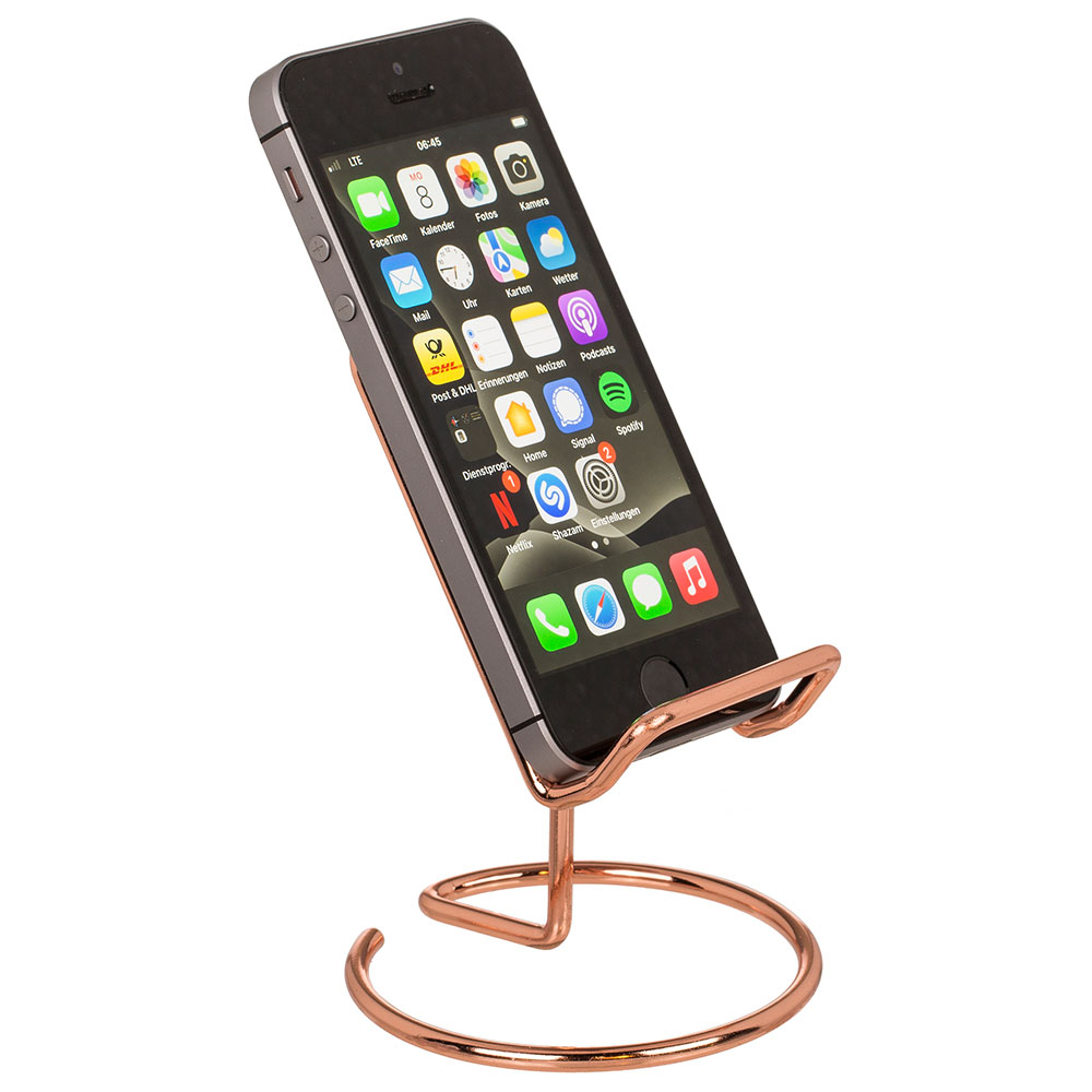 – Mobilhållare i roséguld.