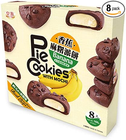 Mochi kakor, även kallade "Pie Cookies with Mochi", består av mochi med banansmak täckt av ett skal av chocolate chip cookie.
