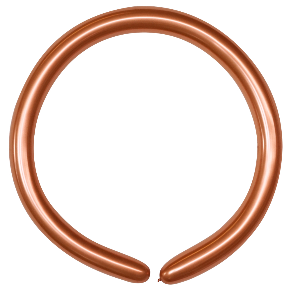 Modellballonger Chrome Koppar 100-pack omfattar 100 stycken, chrome kopparfärgade modell-latexballonger som kan vridas och formas till olika figurer. Ballongerna fylls med luft, mäter ca 5 cm i diameter och är ca 120 cm långa. Ballongerna är även biologiskt nedbrytbara.