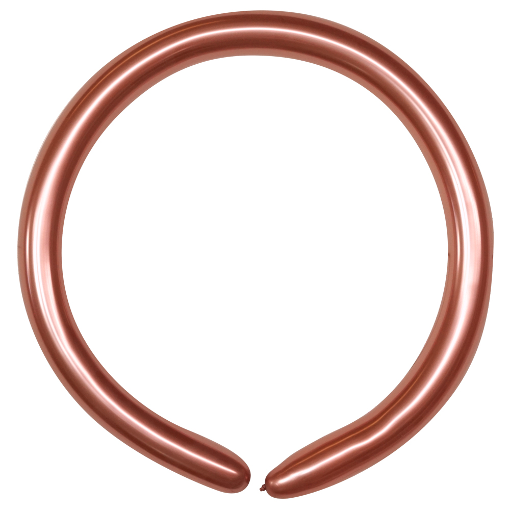 Modellballonger Chrome Roséguld 100-pack omfattar 100 stycken chrome roséguldiga modell-latexballonger som kan vridas och formas till olika figurer. Ballongerna fylls med luft, mäter ca 5 cm i diameter och är ca 120 cm långa. Ballongerna är även biologiskt nedbrytbara.