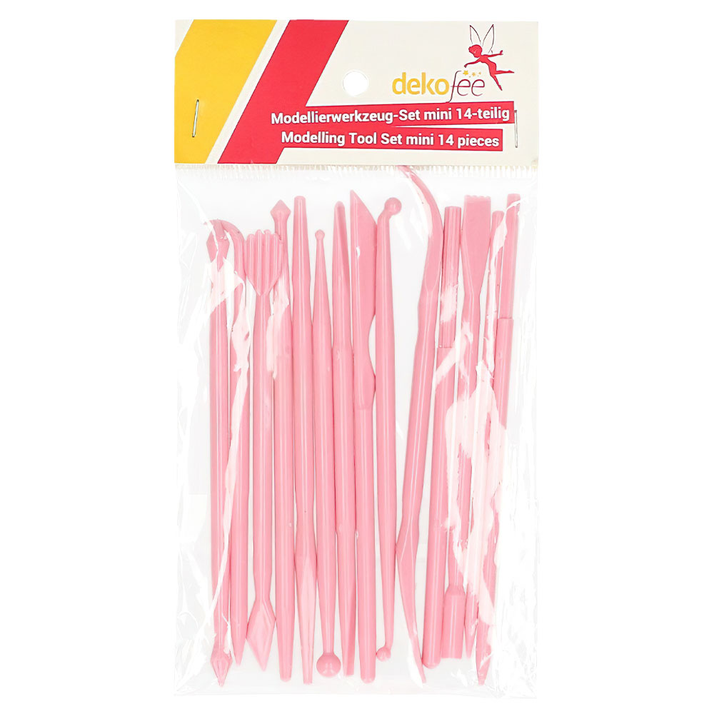 Modelleringsverktyg Mini består av 14 stycken mini modelleringsverktyg med 28 olika designhuvuden. Verktygen är tillverkade av plast och är ca 12 cm långa. Passande modelleringsverktyg till exempelvis marsipan och sockerpasta.