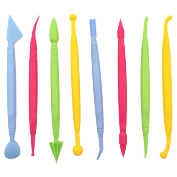 Modelleringsverktyg omfattar 8 stycken modelleringsverktyg i olika färger med 16 olika designhuvuden. Verktygen är tillverkad av plast och är ca 15-17 cm långa.