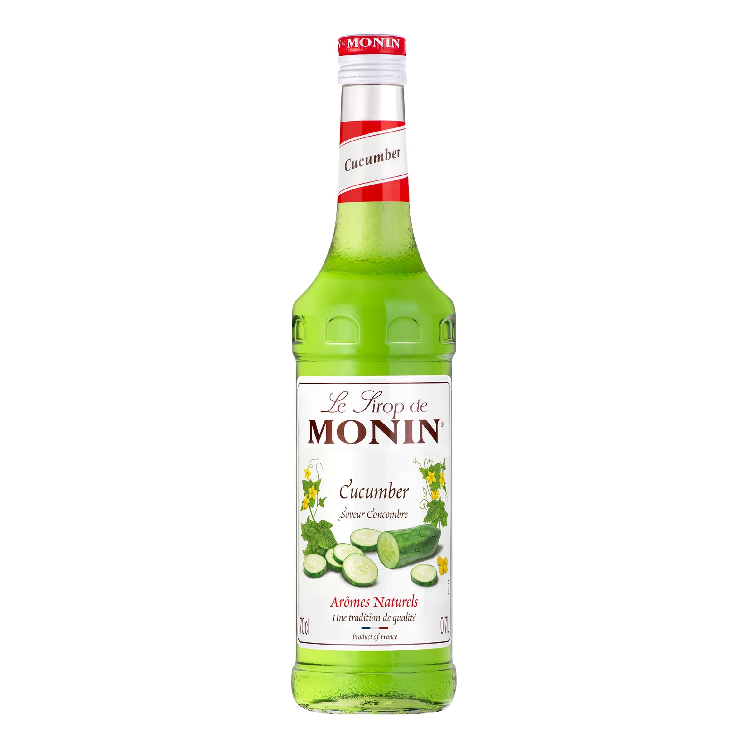 Monin Cucumber Syrup är en drinksirap med smak av gurka. Levereras i flaska om 70 cl. Öppnad flaska håller sig i tre månader.