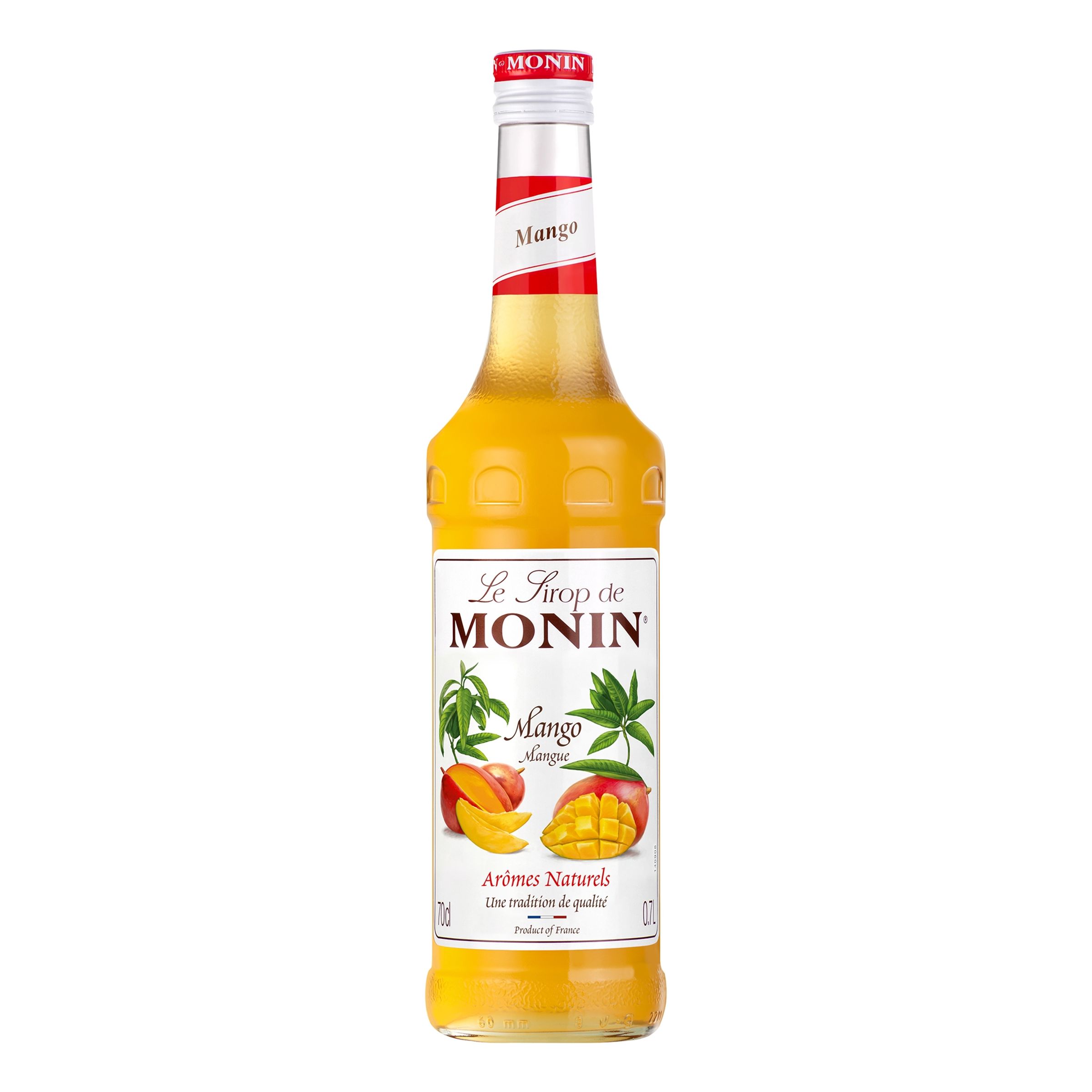 Monin Mango Syrup är en flaska smaksättningssirap som smakar gott av mango.