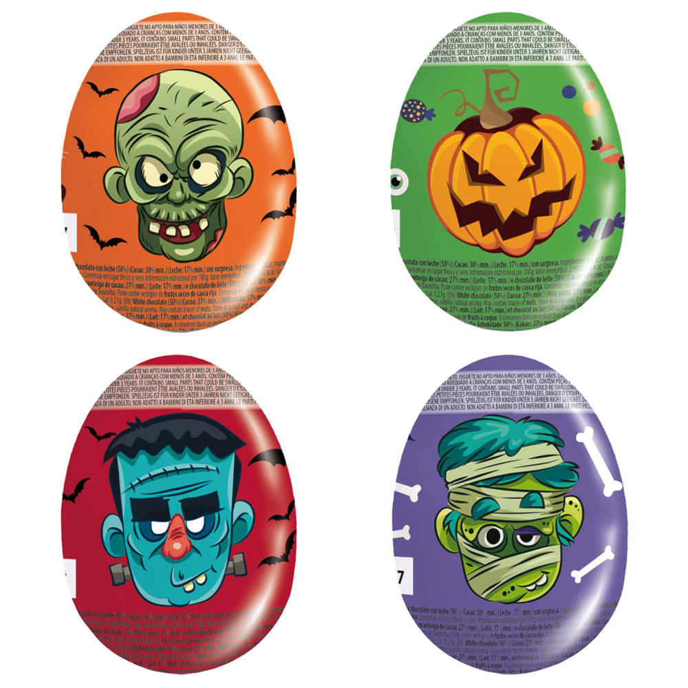 Monster utgör inte bara den dekorativa delen vid högtiden Halloween utan de är nämligen även jättegoda att äta på. Som demonstration har vi här världens mest delikata monster godis i form av ett chokladägg som dessutom sitter på en överraskning inuti!