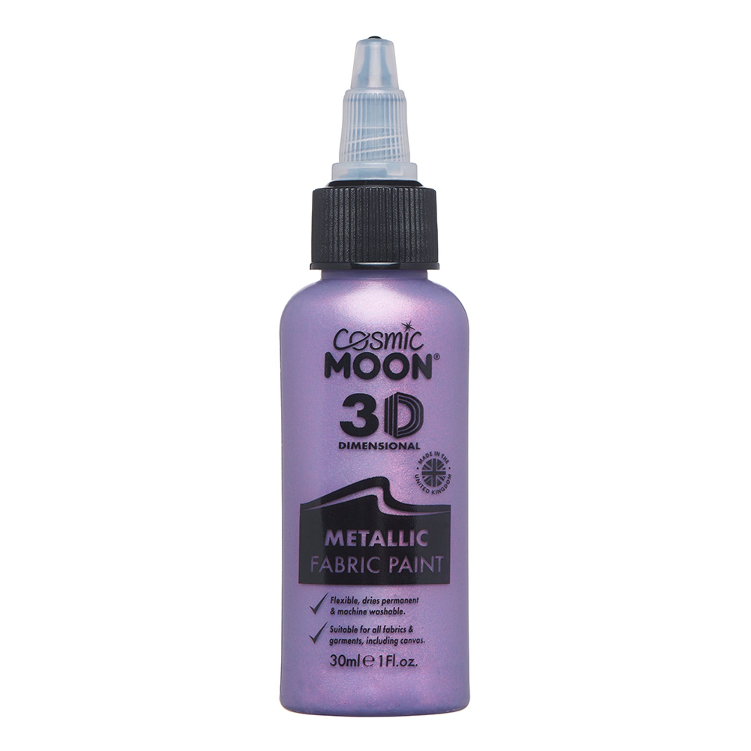 Moon Creations Metallic Textilfärg levereras styckvis i flaska om 30 ml och innehåller metallic-aktig textilfärg. Välj mellan hela åtta häftiga färger. Färgen är permanent och fäster väldigt snabbt efter applikation. Färgen fungerar på alla sorters tyg och är tvättbar. Observera också att färgen är helt vegansk och har aldrig blivit testad på djur.