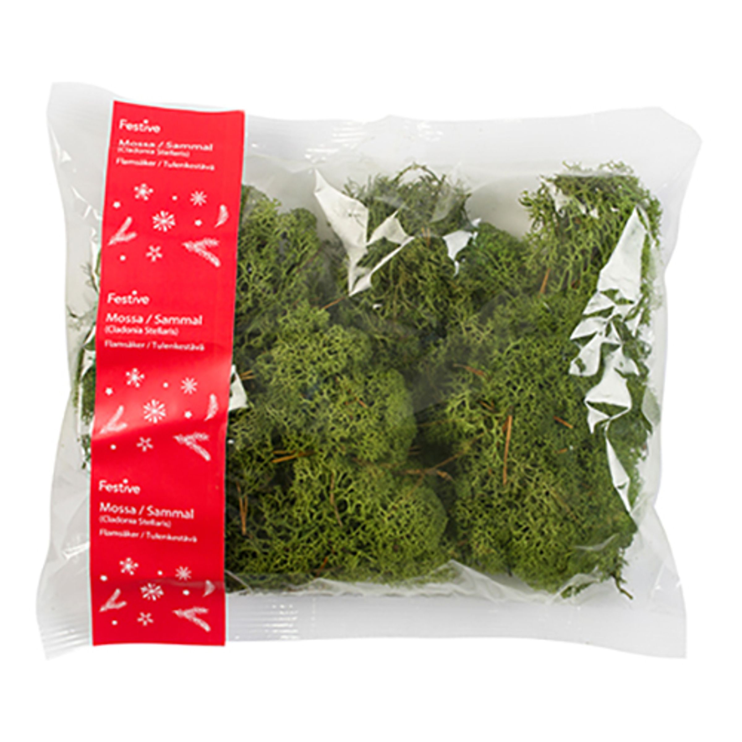 Härlig grön mossa som passar perfekt att dekorera med på olika sätt när det är advent och jul. Du kan till exempel lägga mossan i en adventsljusstake med fyra ljus, i en kruka med julblommor eller så kan du bygga upp ett mysigt jullandskap med mossan, små tomtar och annat julpynt. Det blir en härlig detalj att ställa på middagsbordet som en annorlunda bordsdekoration eller i ett fönster.