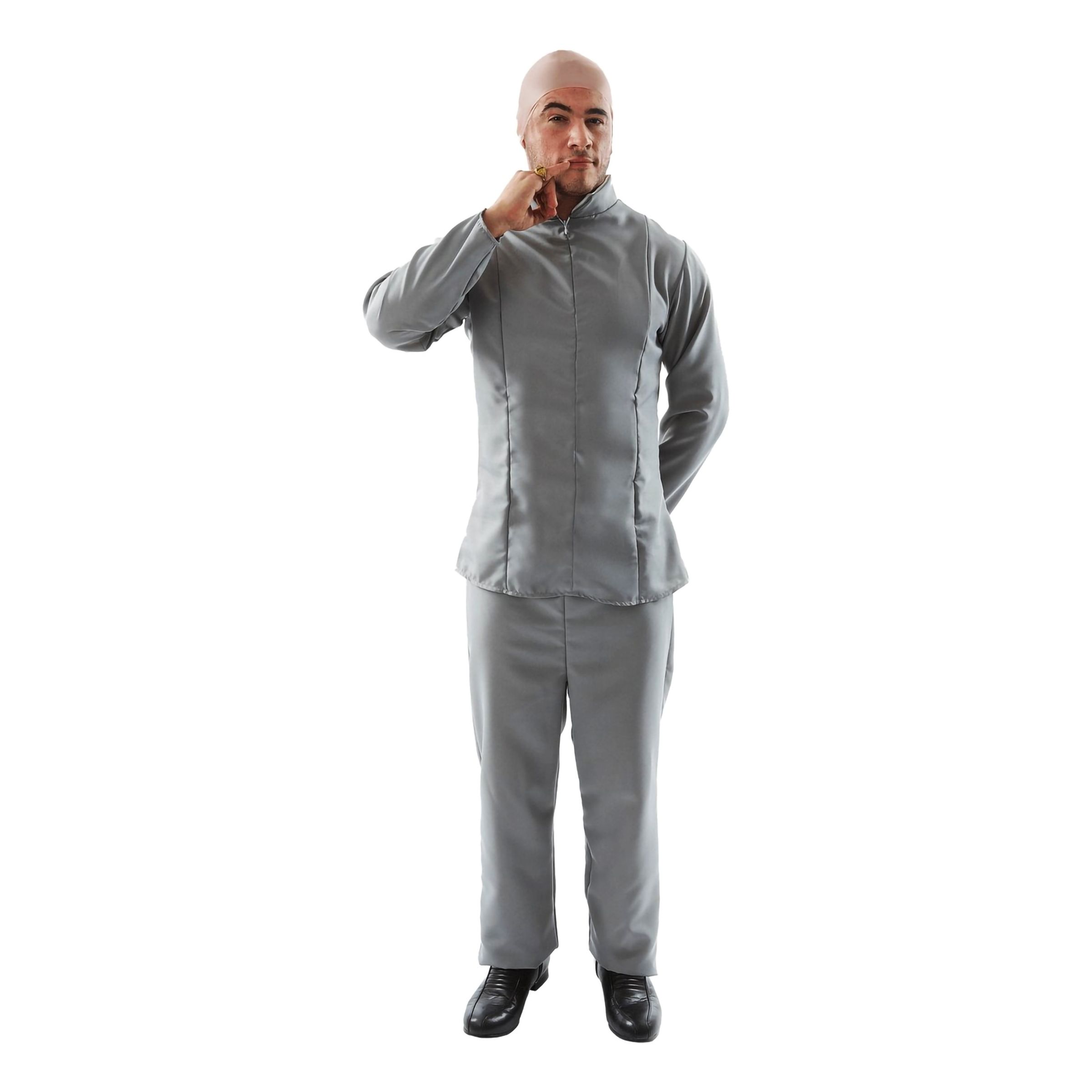 Mr Evil Maskeraddräkt inkluderar en grå tröja och ett par matchande grå byxor. Den kala skallen ingår dock ej, men det kan du enkelt fixa med en rakhyvel eller köpa till en flintmössa! En utmärkt dräkt för halloweenfesten eller 90-talsmaskeraden!
